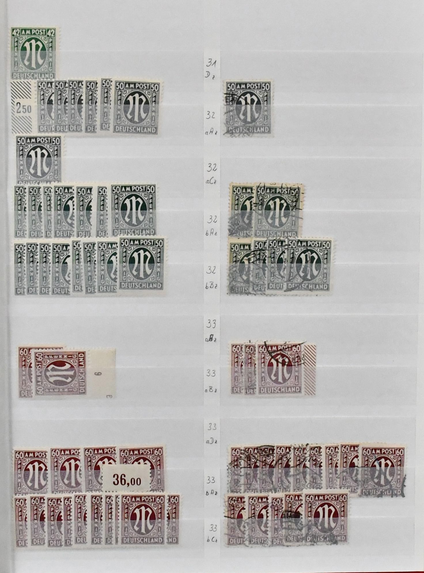 AM-Post, Partie von rund 800 postfr. u. gest. Werten ex Nr. 1/35, alle nach Papiersorten und Zähnungen spezialisiert. Der wertmäßige Schwerpunkt liegt bei den gest. Werten, inkl. Nr. 10G, Nr. 12 mit zehn Werten, 14G mehrf., viel deutscher Druck, u.a. mit Nr. 19D, 20Ax mehrf., 24C, 26A/D, 27A/C, 32/33 mehrf., alles gestempelt, Nr. 34 fünfmal postfr., usw. Mi. 6000,-