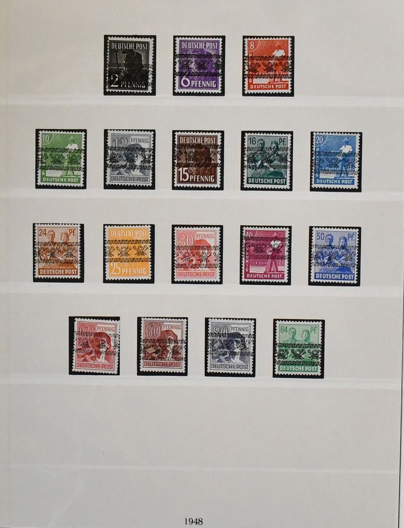 Bizone, 1945/49, gestempelte, von Nr. 1-110 (ohne Nr. 52/68) nahezu kpl. Sammlung auf Lindner-T-Vordrucken. Dabei Nr. 1/35 (Nr. 34/35 ungepr.), 36/51I/II (Mi. 400,-), Bauten eg/wg und beide Typen der Mark-Werte kpl., Nr. 101/10, Block 1 mit SST (tiefst gepr. Schlegel, Mi. 250,-) usw.