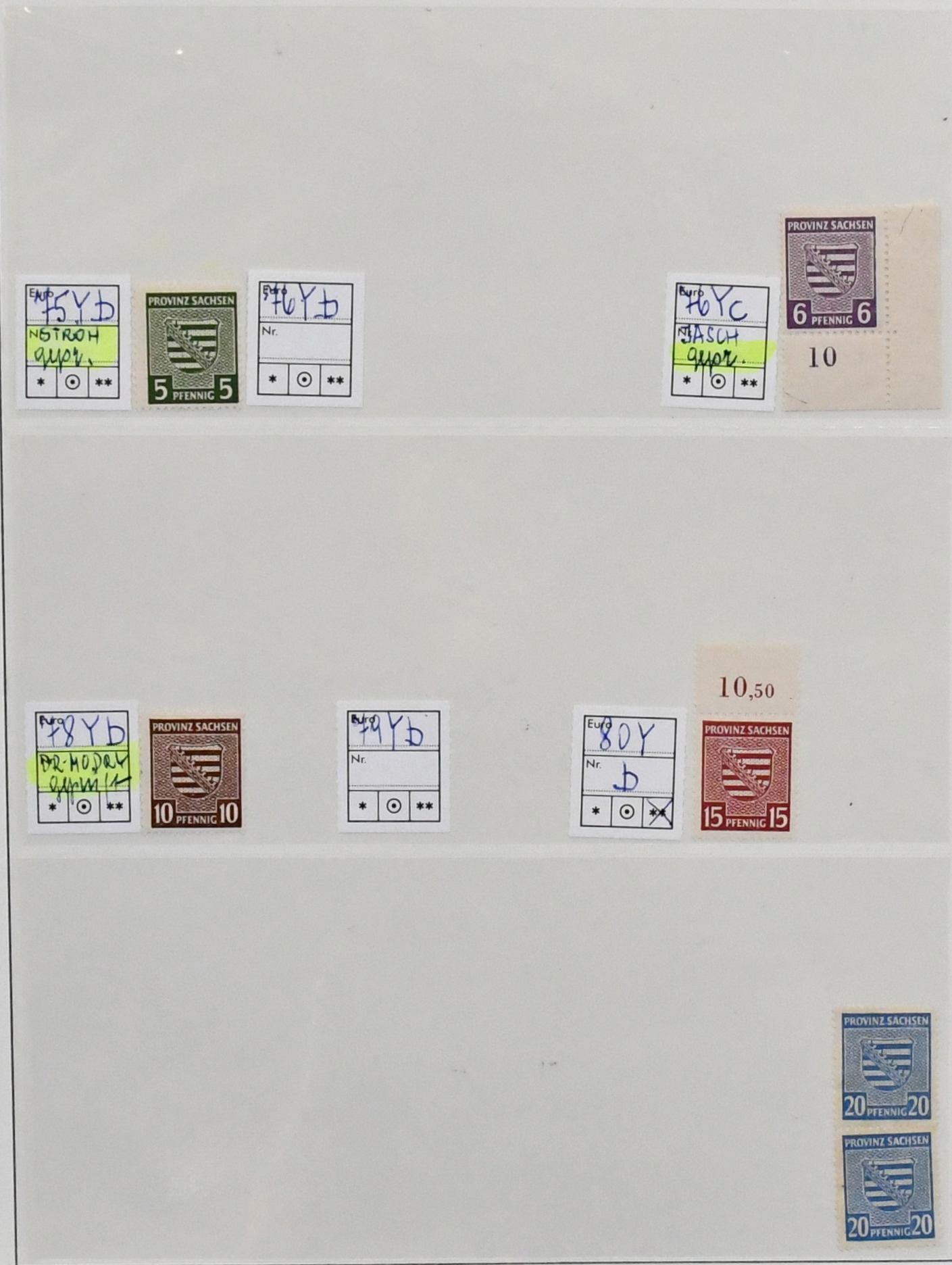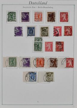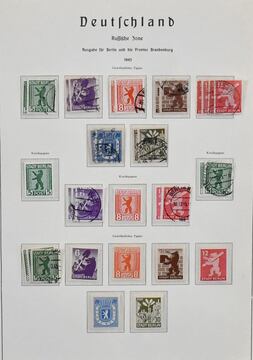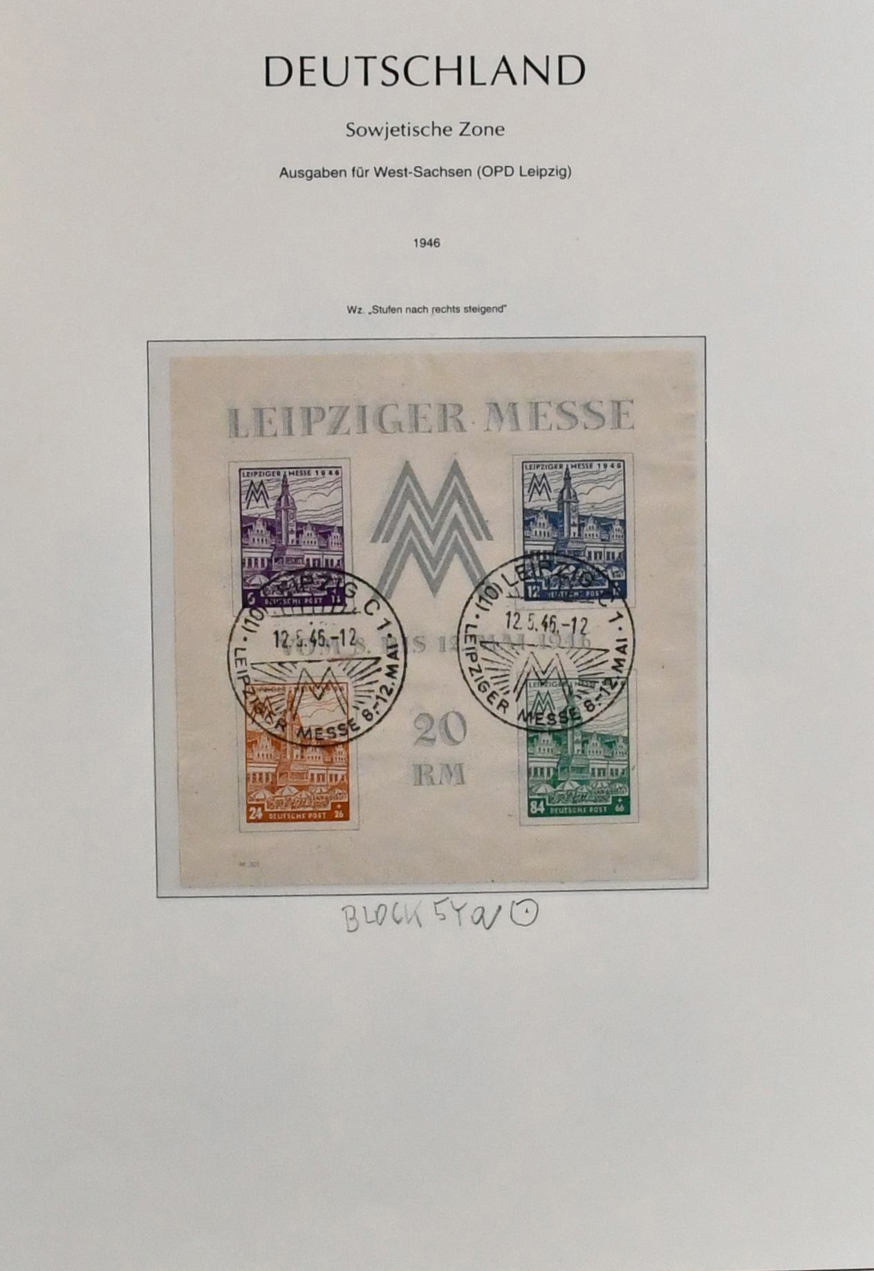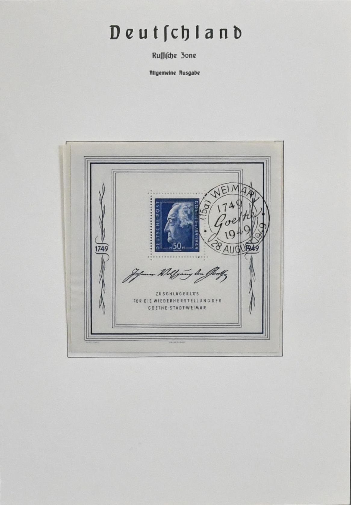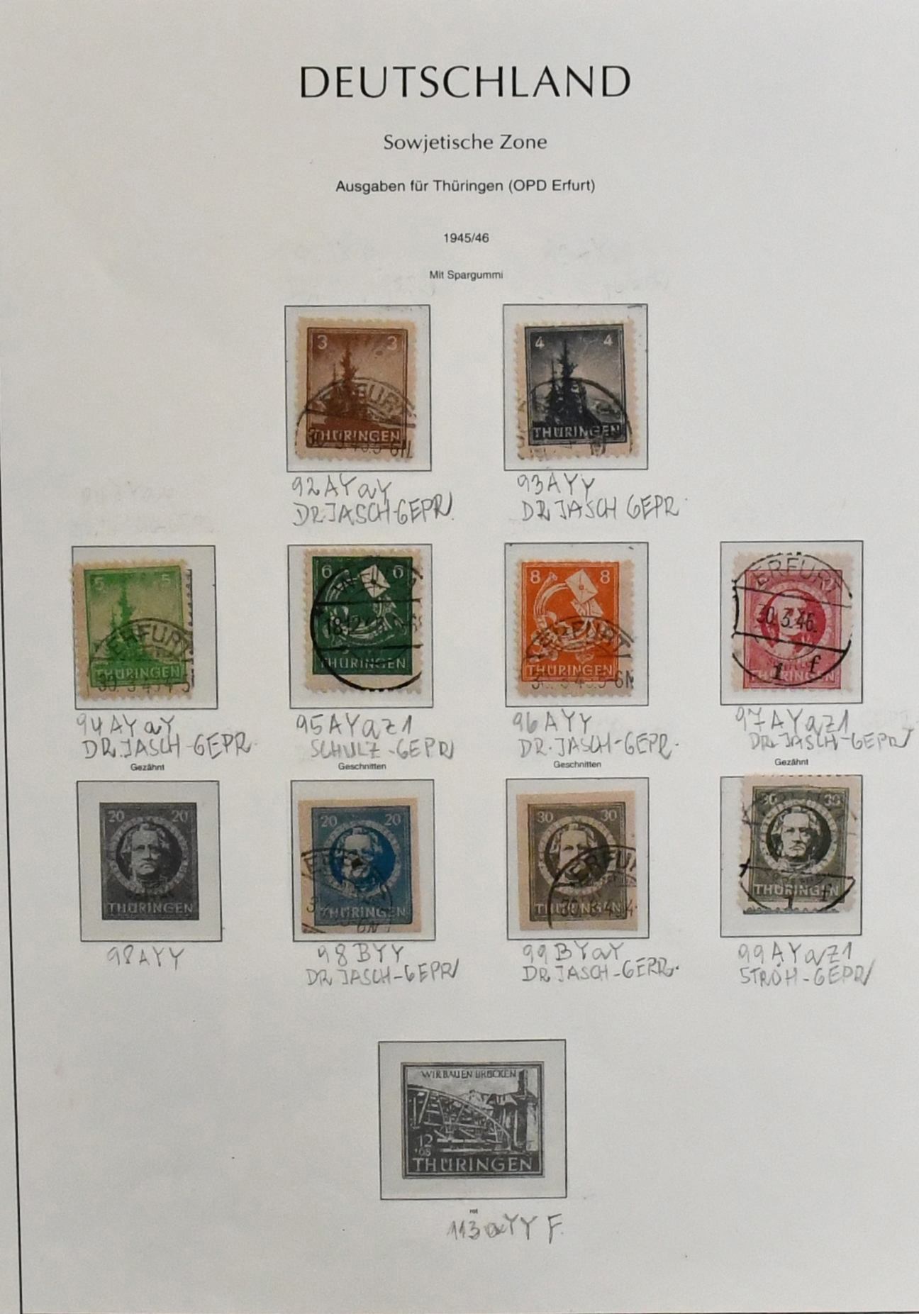 SBZ, hochwertige Sammlung im Vordruckalbum, über weite Strecken postfr. und gest. parallel geführt (sehr wenig ungebraucht) und mit vielen gepr. Stücken, dabei u.a. Nr. 8y gest. (gepr.), 20-22, 23-25a/b, 26-28, je gest., "Potschta" postfr. (Mi. 600,-), Bl. 1, Bl. 4 (gepr.), je postfr., Bl. 5 gest. (gepr.), Handstempelaufdrucke gest. mit Nr. 179 u. 179A, Bl. 6 gest. etc., sauberes Objekt mit hohem KW
