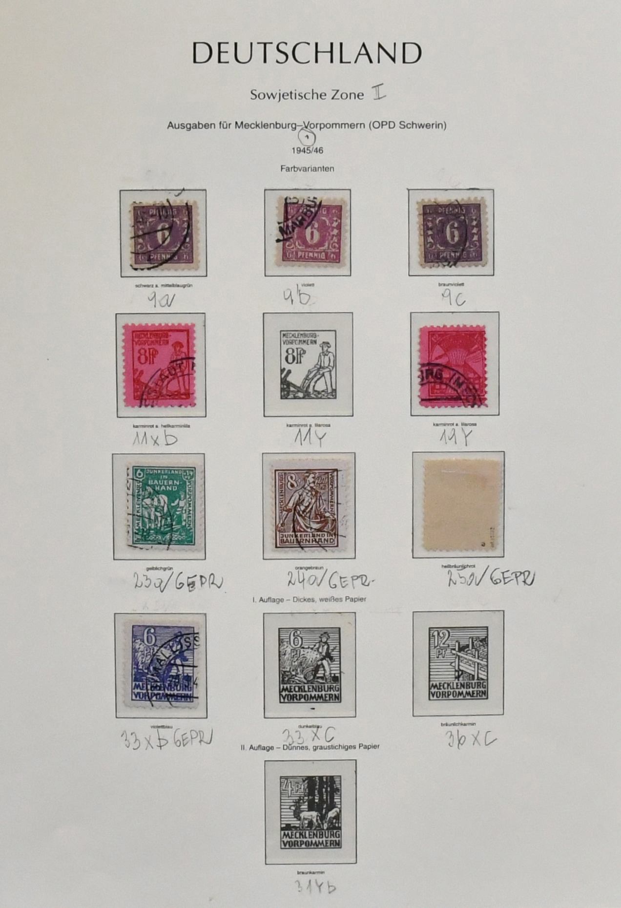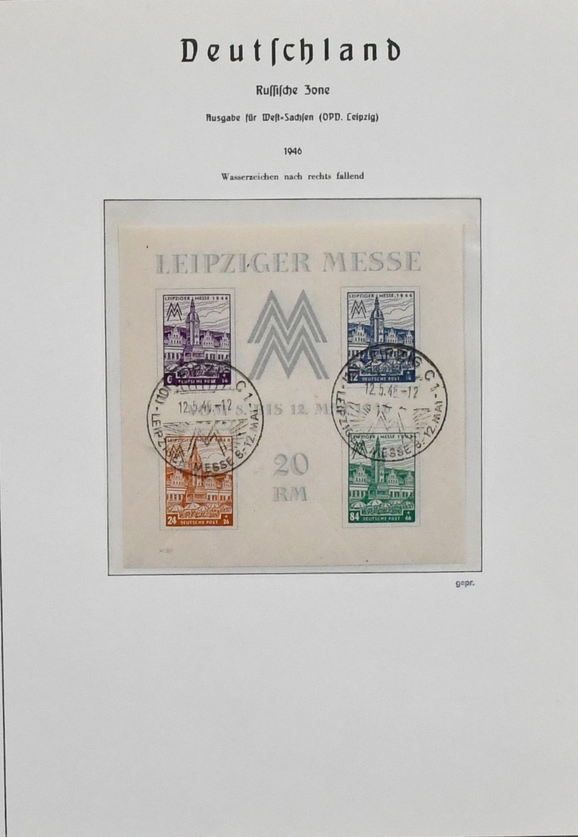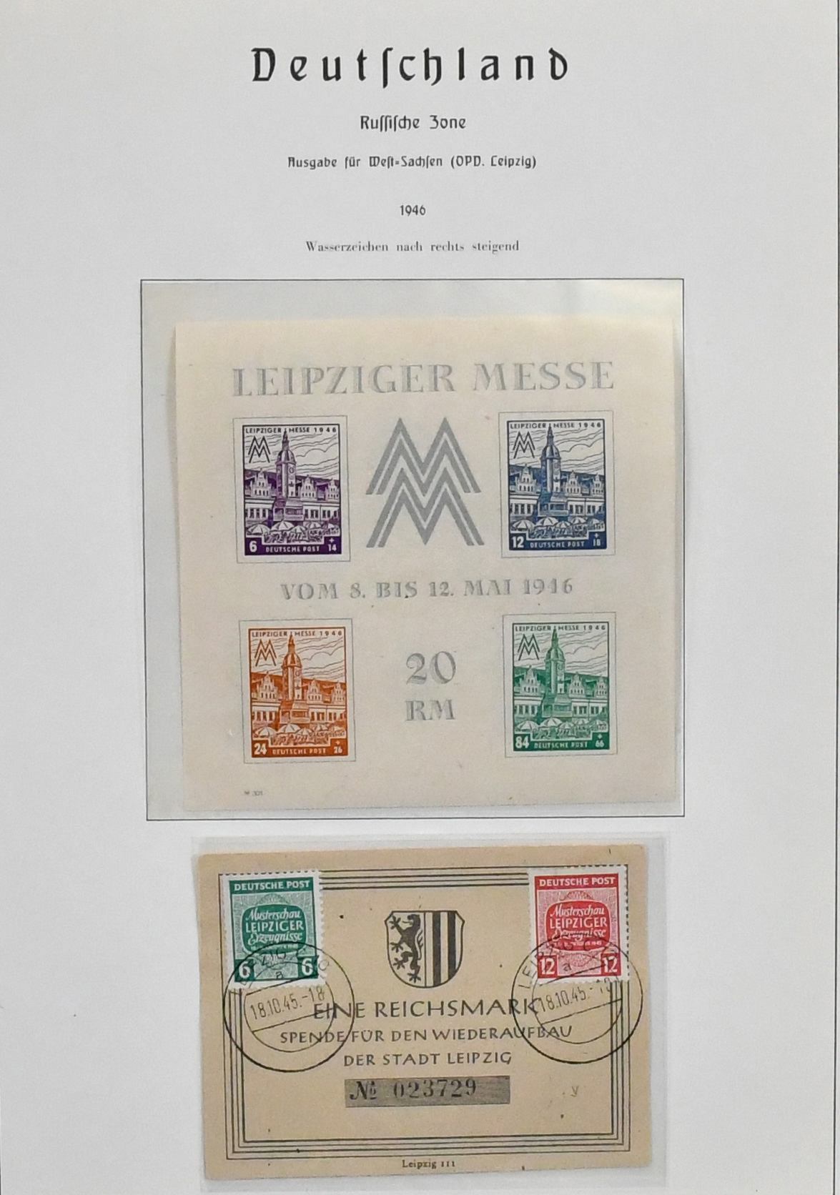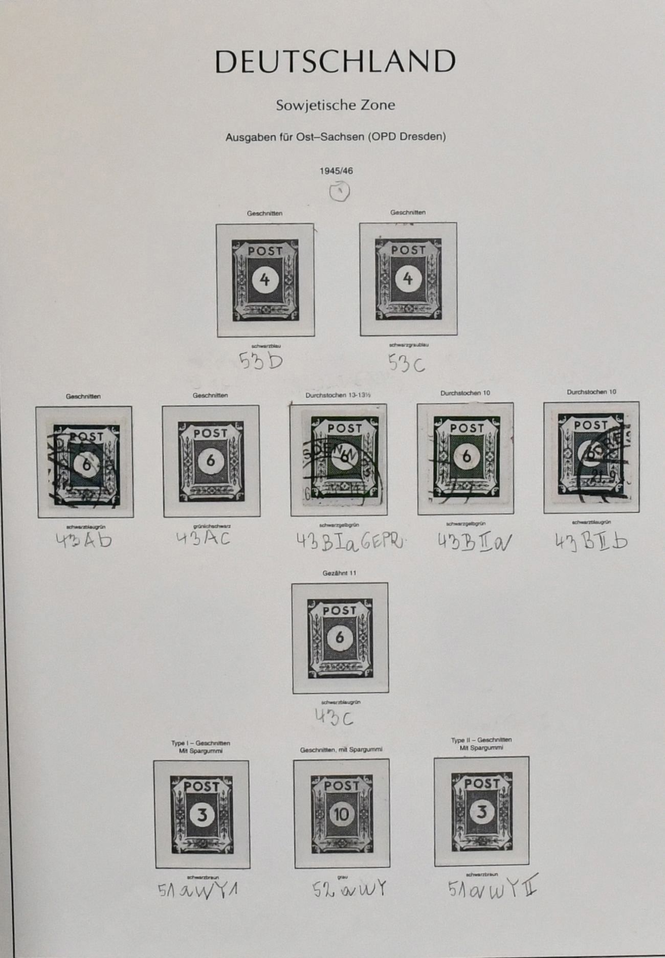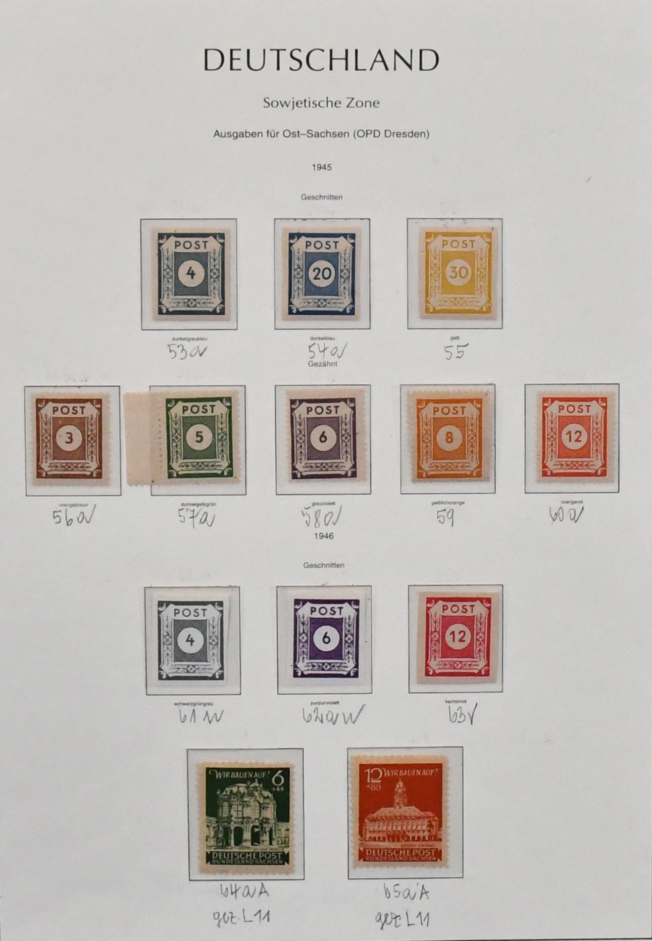 SBZ, hochwertige Sammlung im Vordruckalbum, über weite Strecken postfr. und gest. parallel geführt (sehr wenig ungebraucht) und mit vielen gepr. Stücken, dabei u.a. Nr. 8y gest. (gepr.), 20-22, 23-25a/b, 26-28, je gest., "Potschta" postfr. (Mi. 600,-), Bl. 1, Bl. 4 (gepr.), je postfr., Bl. 5 gest. (gepr.), Handstempelaufdrucke gest. mit Nr. 179 u. 179A, Bl. 6 gest. etc., sauberes Objekt mit hohem KW