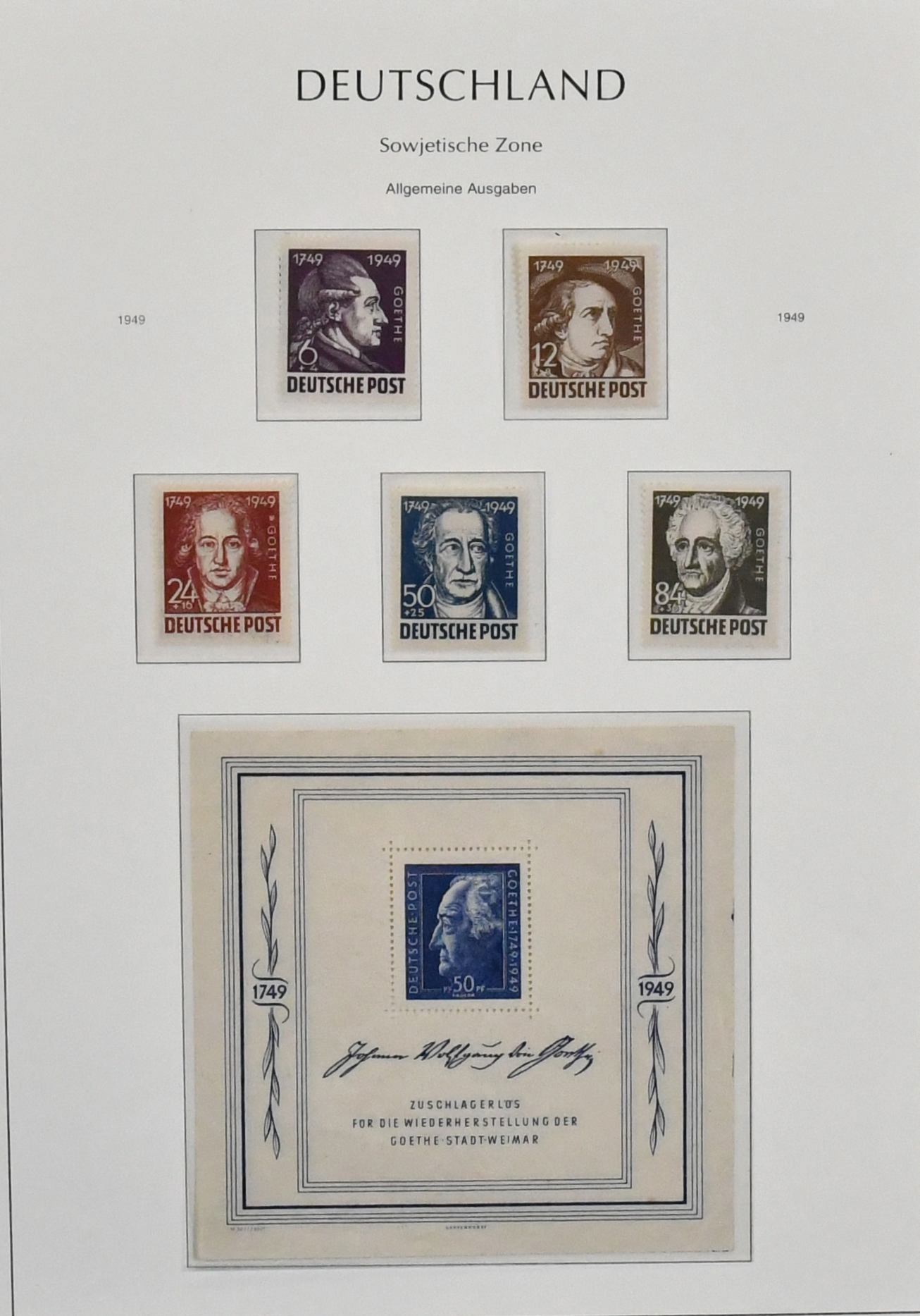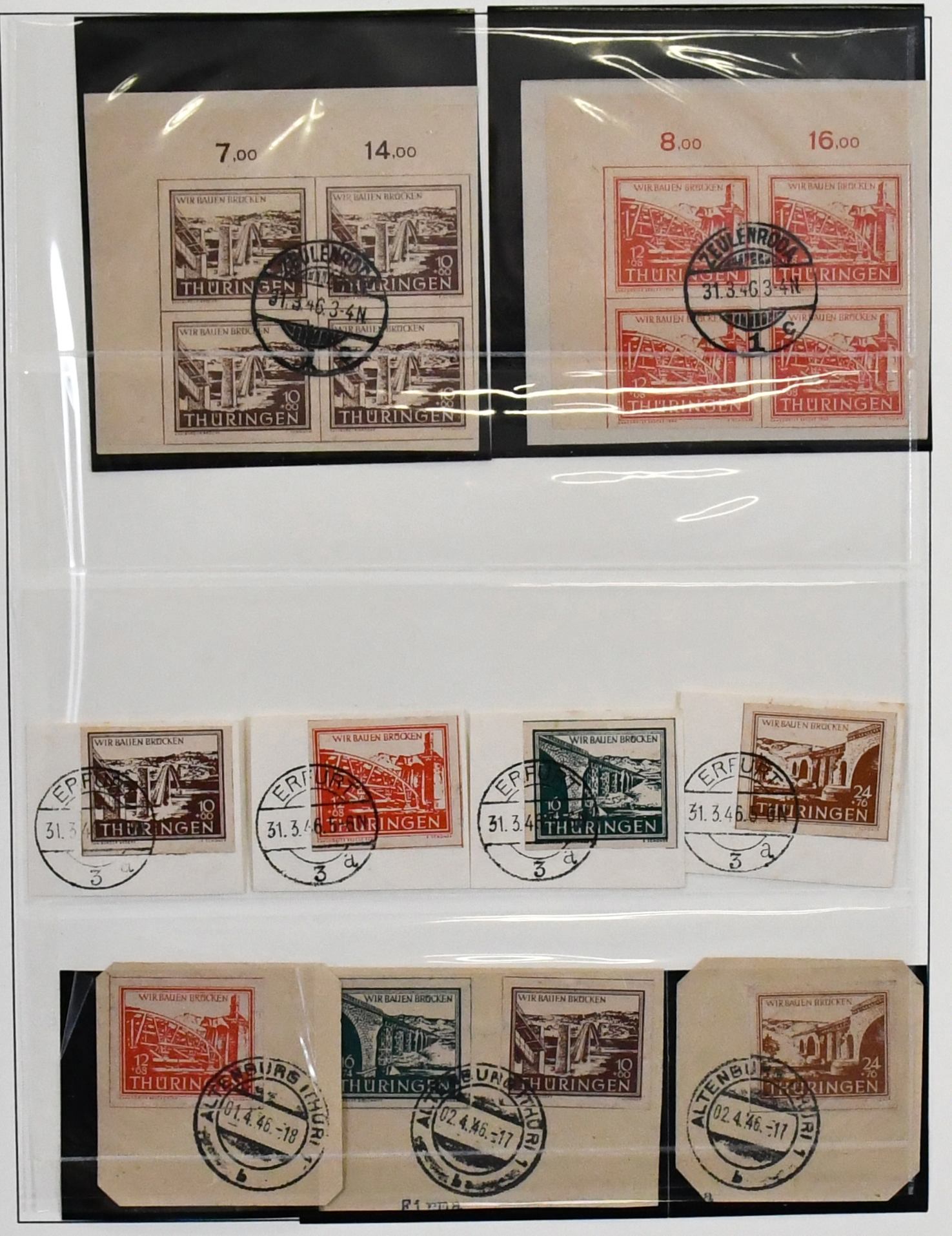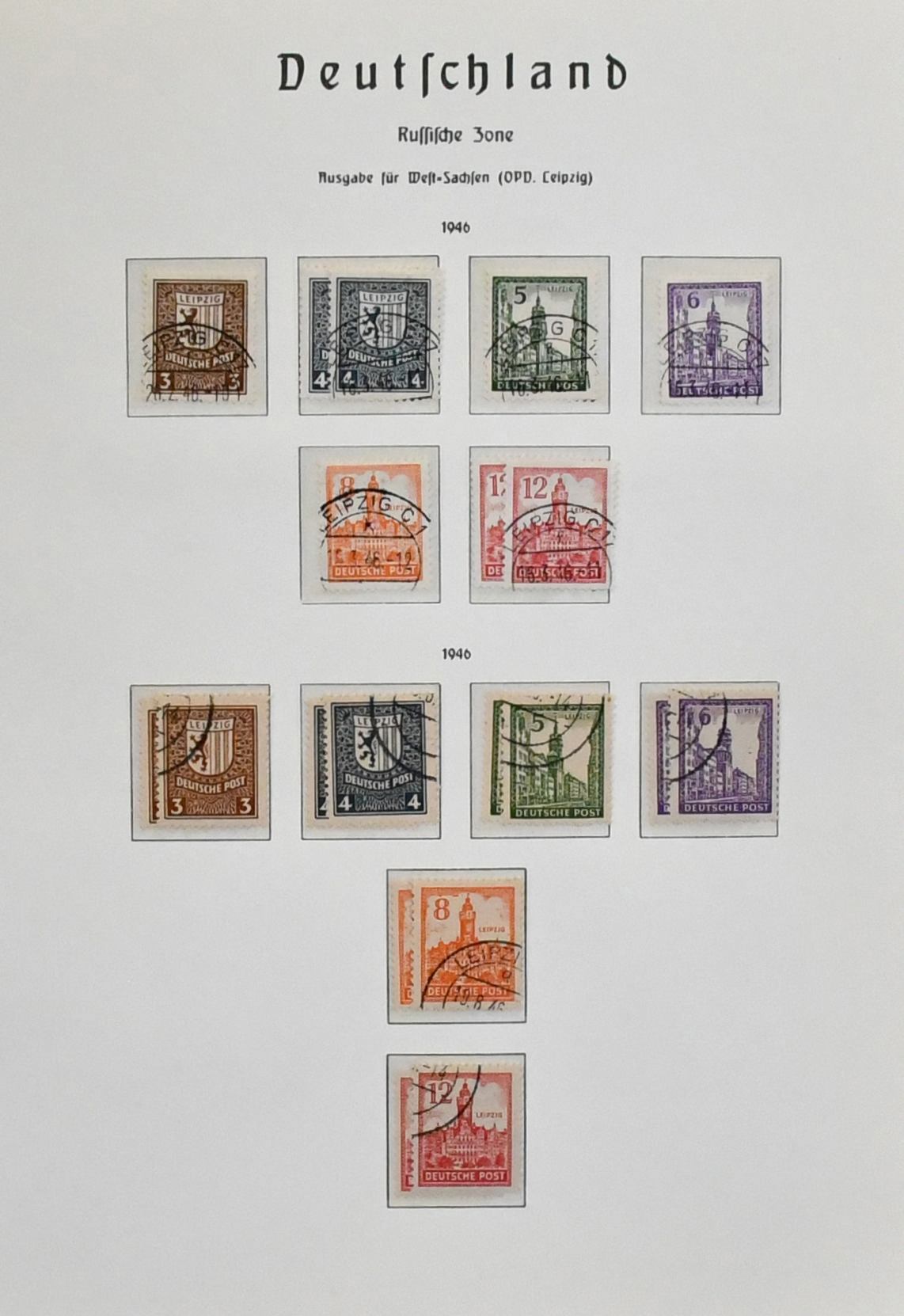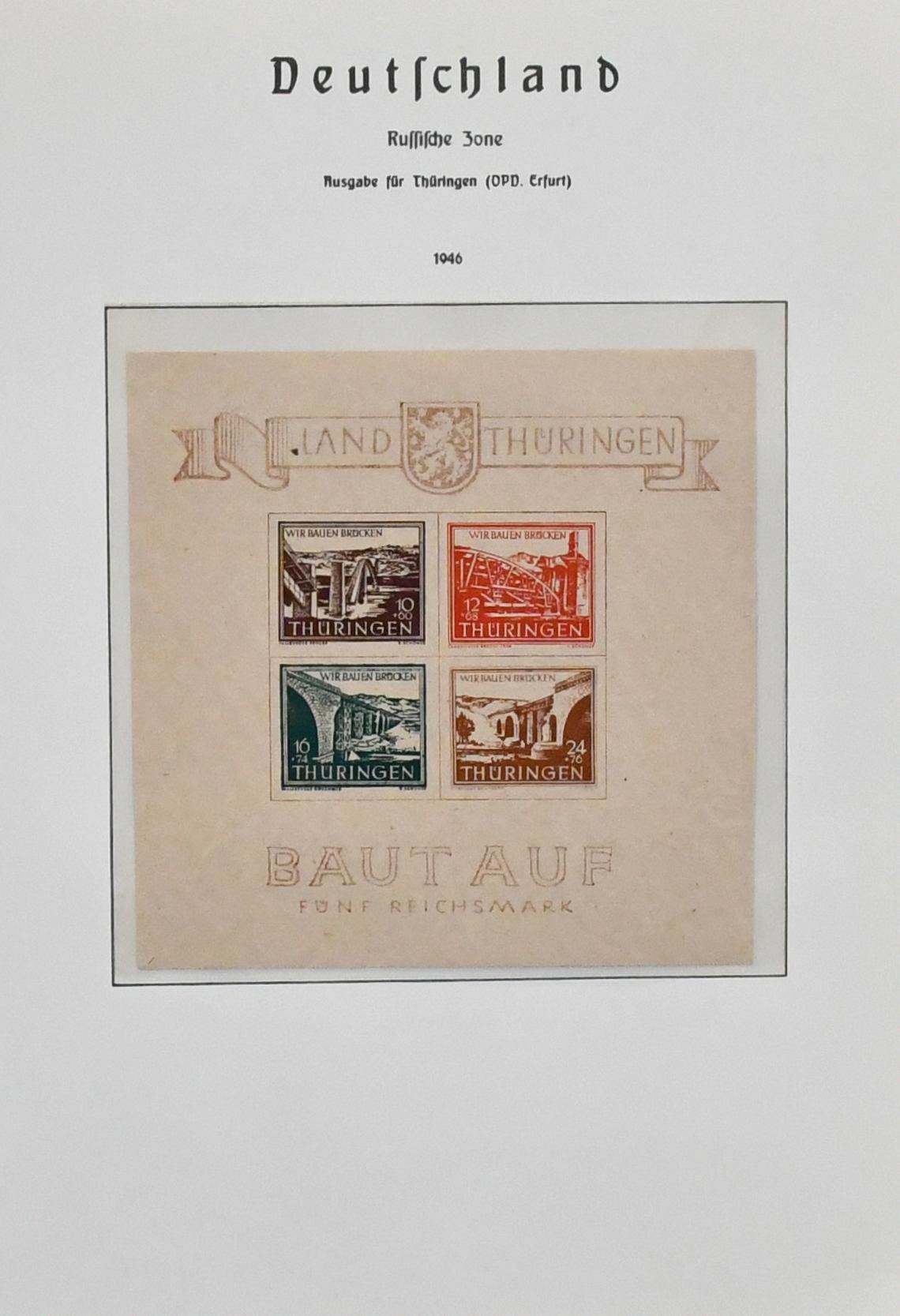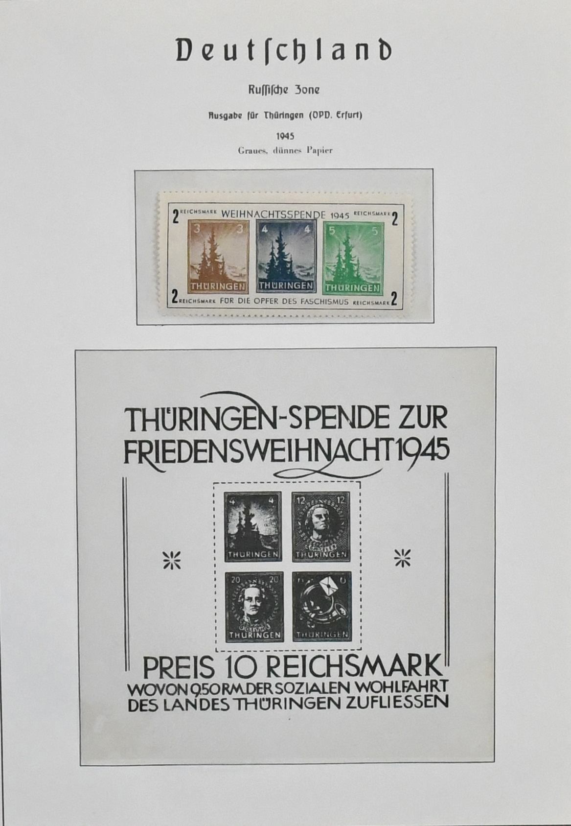 SBZ, hochwertige Sammlung im Vordruckalbum, über weite Strecken postfr. und gest. parallel geführt (sehr wenig ungebraucht) und mit vielen gepr. Stücken, dabei u.a. Nr. 8y gest. (gepr.), 20-22, 23-25a/b, 26-28, je gest., "Potschta" postfr. (Mi. 600,-), Bl. 1, Bl. 4 (gepr.), je postfr., Bl. 5 gest. (gepr.), Handstempelaufdrucke gest. mit Nr. 179 u. 179A, Bl. 6 gest. etc., sauberes Objekt mit hohem KW