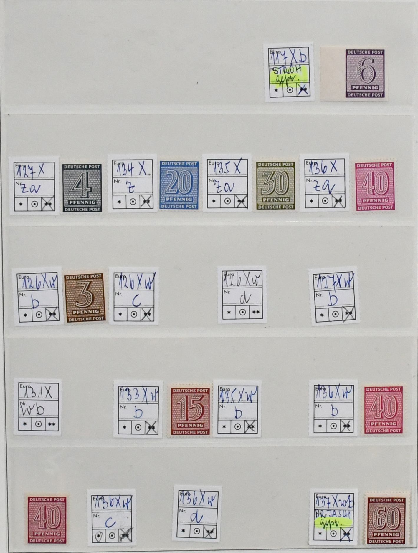 SBZ, 1945/1949, postfrische, lediglich ohne Bl. 1/2 und Bl. 4/5, in den Hauptnummern komplette, vielfach nach Farben und weiteren Besonderheiten spezialisierte Sammlung, im Leuchtturm-Vordruckalbum. Dabei Nr. 1/7 hochspezialisiert, Nr. 8/19 überkpl., 20/28, 29/40x/y, viele geprüfte Farben, z.B. Nr. 153Yb, Bl. 6 usw. Mi. 3900,-