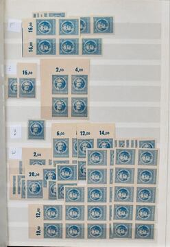 Ost-Sachsen, Zusammenstellung mit u.a. 42mal Nr. 43, u.a. achtmal mit vollem Mittelstück, vielfach durchstochen, Nr. 43C im postfr. Bogenecken-Dreierstreifen (mit Altsignatur, Mi. 720,- ++), Nr. 52wax postfr., Nr. 56 mit rechts anhängendem Leerfeld usw. Hoher vierstelliger KW