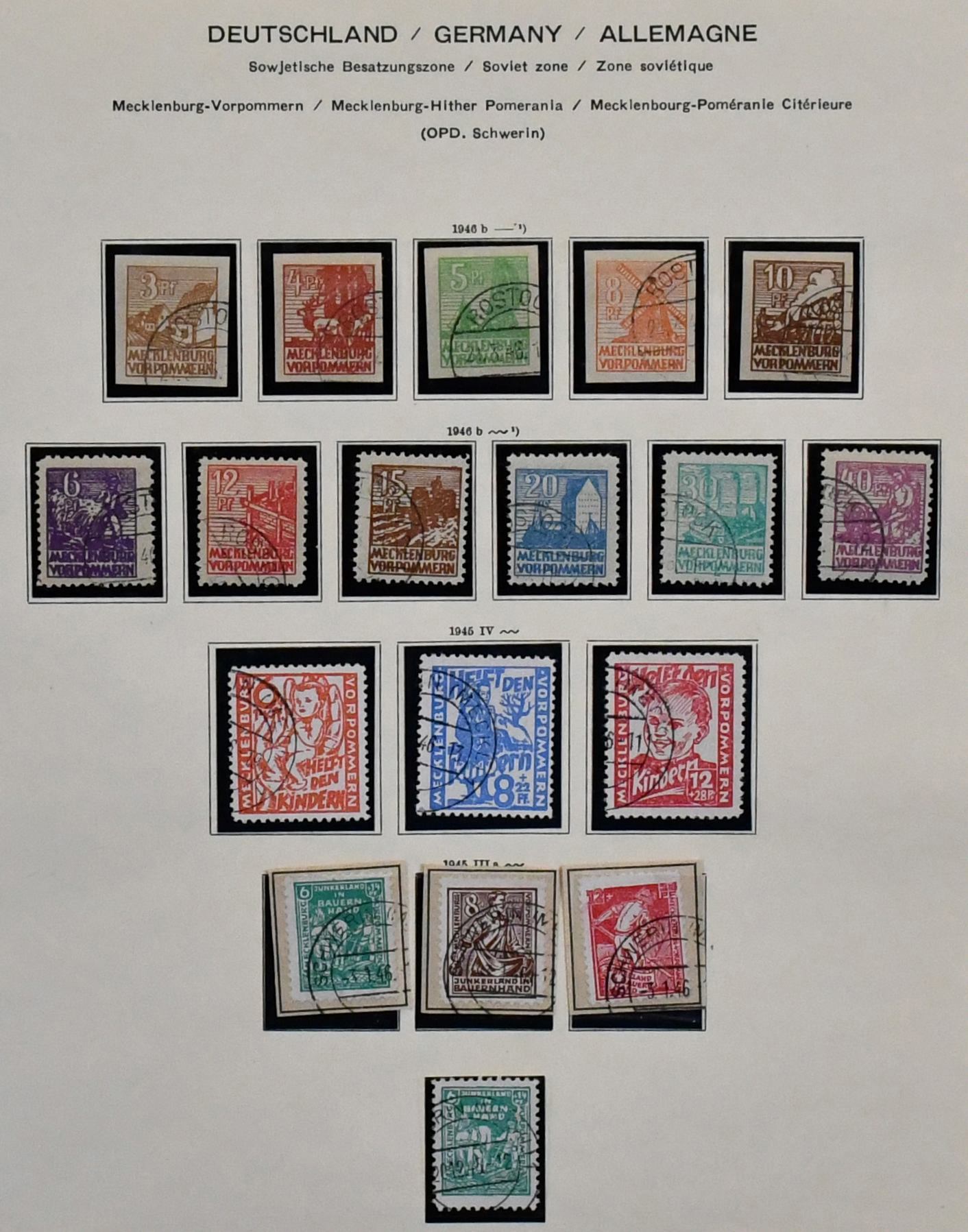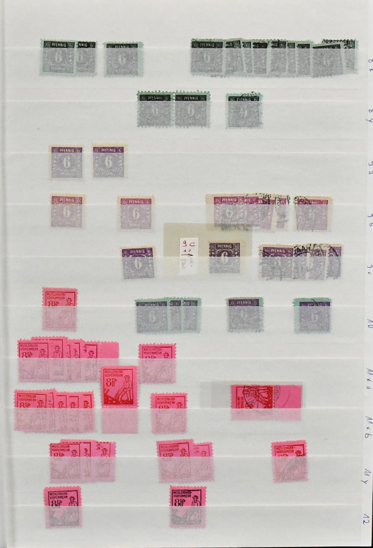 Mecklenburg-Vorpommern, Zusammenstellung mit Nr. 8/19 mehrfach, teils vielfach, Nr. 20/22 mehrf. mit insgesamt 15 Werten, 23/25 mehrf., 26/28 mehrf. postfr. u. ungebr., weitere Nr. 26/28 gest. (Mi. 180,-), sowie Nr. 26/27 ungezähnt postfr.