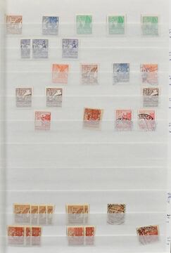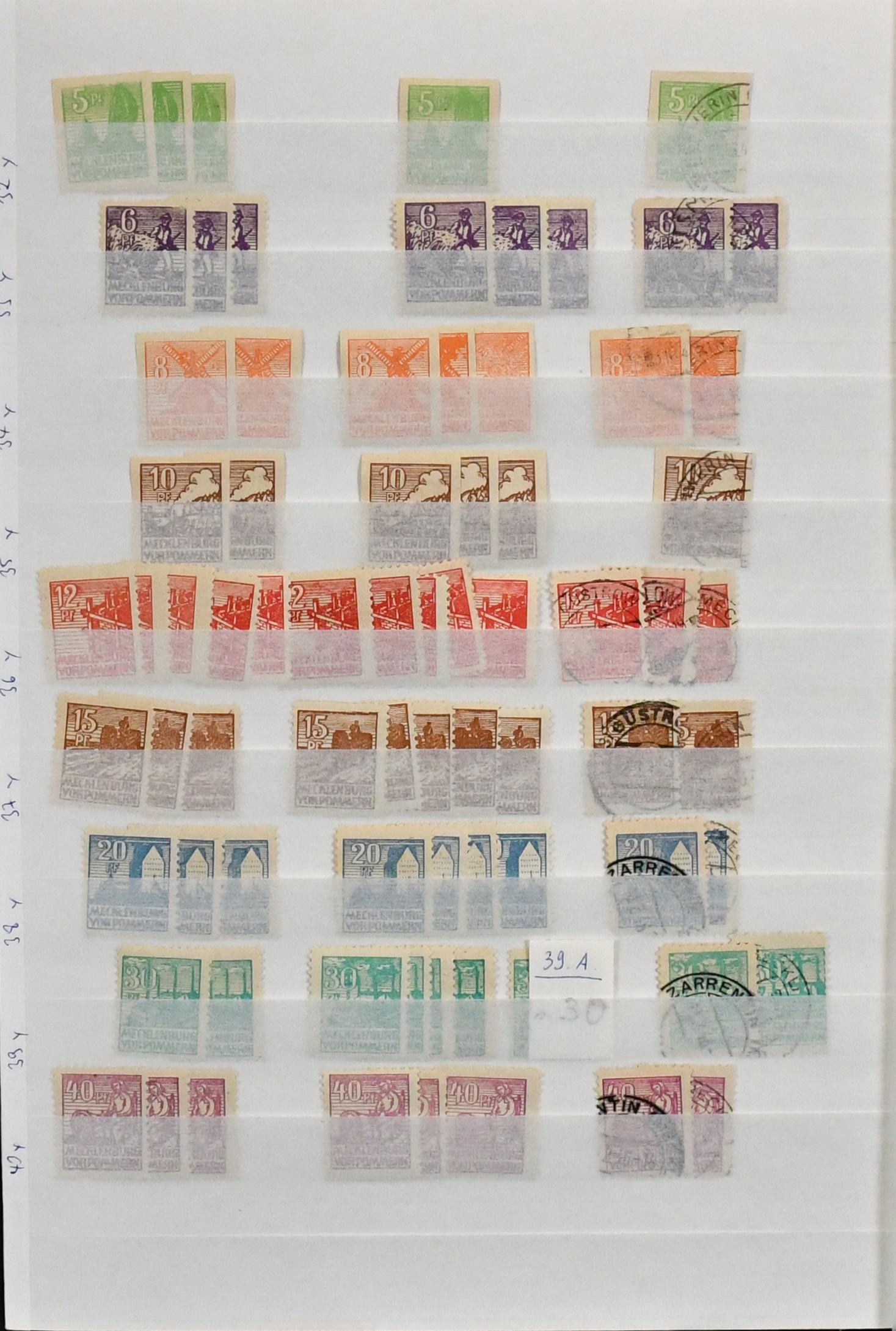 SBZ, 1945/1949, Zusammenstellung von 1200 Werten, sortenreich, mit u.a. Nr. 29/40x/y kpl., meist mehrfach, u.a. Nr. 34/35x per vier (Mi. 240,-), Bezirkshandstempel kpl. inkl. heller 60 Pfg. (ungeprüft) usw.