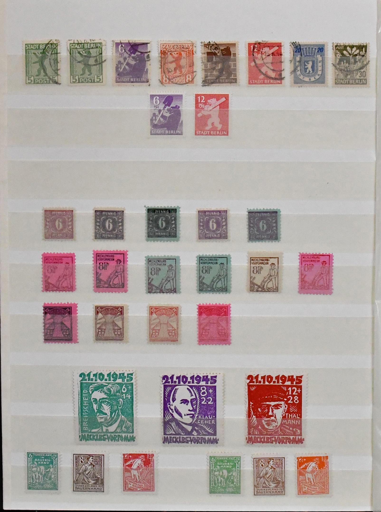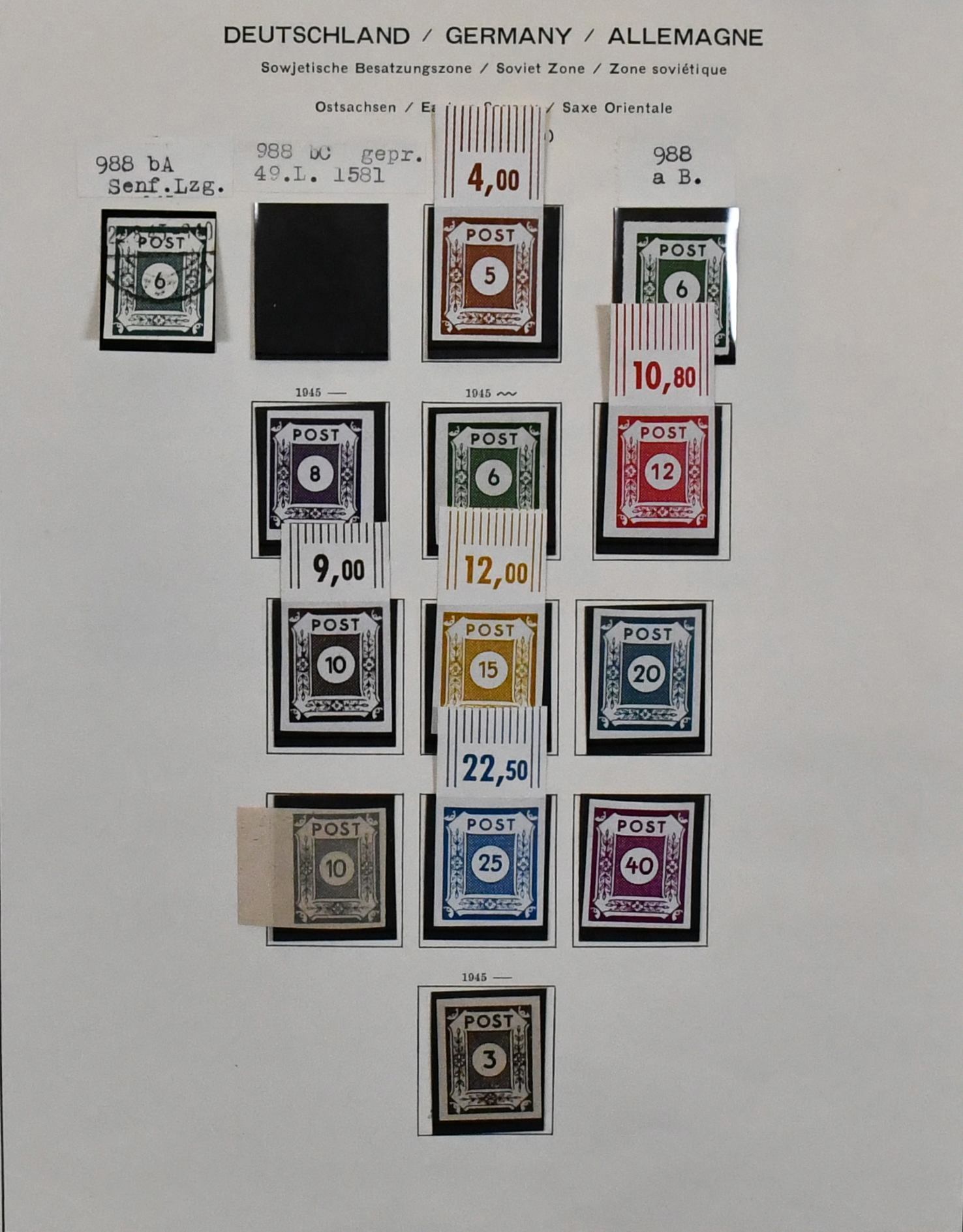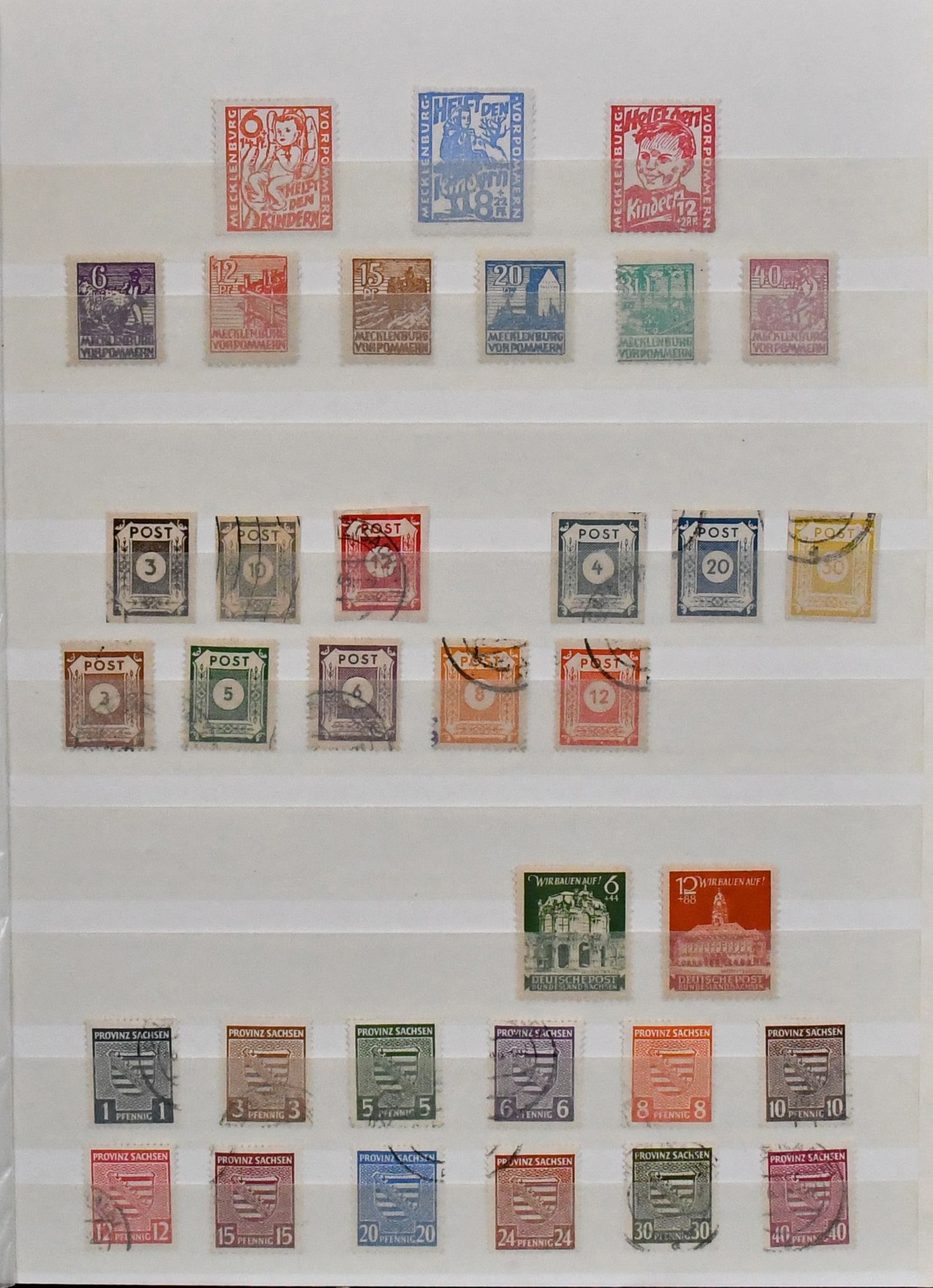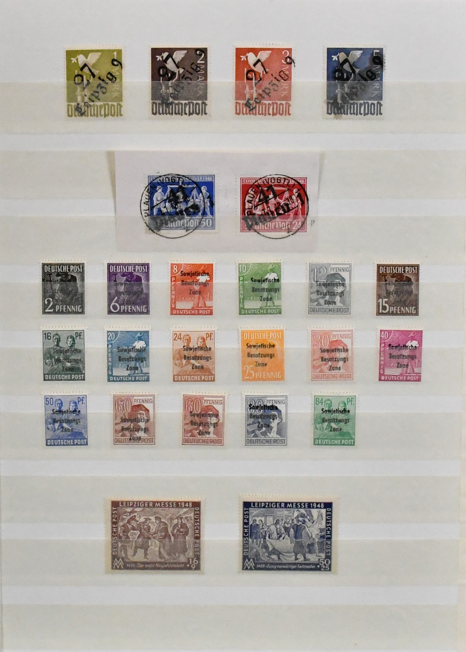SBZ, 1945/49, Slg. ab Nr. 1/7, mit Nr. 20/28 postfr. (Mi. 187,-), inkl. Nr. 23/25a/b, Bl. 3A/B postfr., diversen postfr. Bezirkshandstempeln, Nr. 182/97 inkl. Nr. 195 postfr., Bl. 6 postfr. (Mi. 220,-) usw.