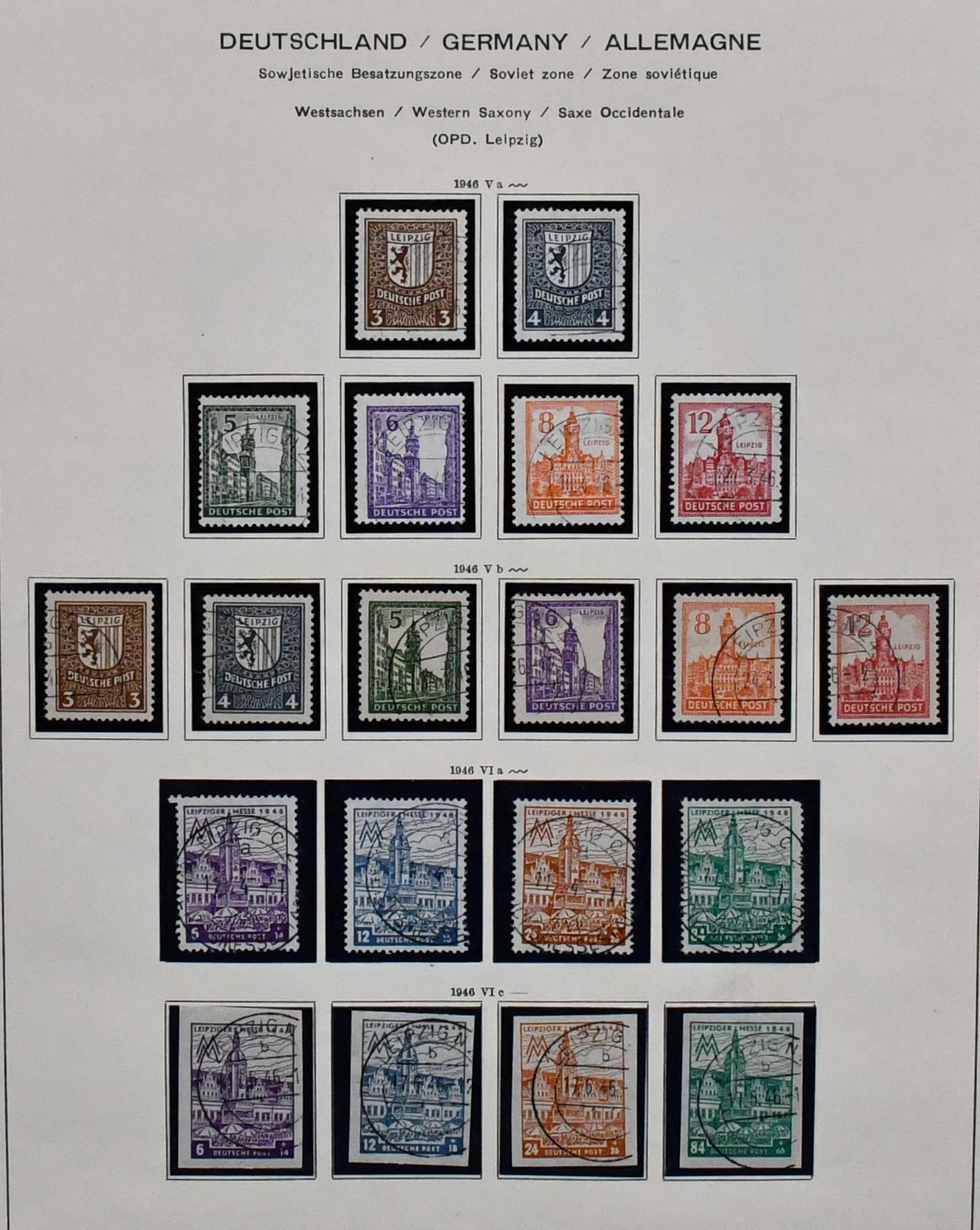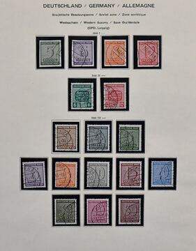 SBZ, 1945/49, gest. Slg. ex Nr. 1/165, auf älteren Schaubek-Vordrucken. Dabei viele kpl. Sätze, u.a. Nr. 20/28, inkl. Nr. 23/25a/b, 29/40y, 87/89A/B, 116/19X/Y, 125X, Bl. 3A/B usw. Mi. 1500,-, wobei diverses nicht gerechnet wurde