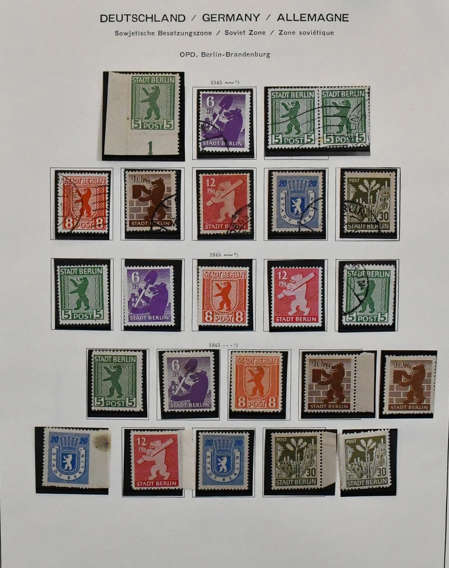 SBZ, 1945/49, von Nr. 1 bis 241, ohne Bl. 1/2, 4 u. 6, in den Hauptnummern kpl., meist ungebr., teils auch gest. Slg. auf Schaubek-Vordrucken. Dabei Nr. 1/7A/B, 8/19 inkl. Nr. 8y, 20/28, 29/40x/y (ohne Nr. 34/35x) kpl., 42/50 inkl. Postmeistertrennungen, Bl. 3A/B, Bezirkshandstempel inkl. 60 Pfg. mit Altsignatur usw.