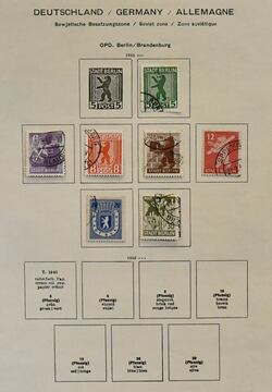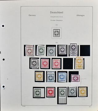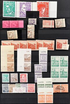 SBZ, 1945/49, hauptsächlich postfrische Slg. ab Nr. 1/20, mit Nr. 30/35x (Mi. 145,-), 29/40y, 73/84Y, 120/24X, 1825/97, 212/27, alle genannten postfrisch, usw., auf Vordrucken