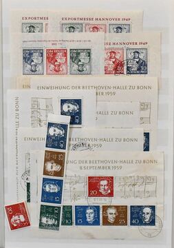 SBZ/DDR, Sammlung mit allgemeine Ausgabe kpl. ungebr., inkl. allen Bezirkshandstempeln mit heller 60 Pfg. und Bl. 6, sowie DDR von 1949-1980, ohne Nr. 327/41, Bl. 7 und 15, kpl., inkl. Nr. 261/70 und 286/88 gest., drei versch. Marx-Blöcke gest. usw. Mi. rund 3500,-, Los 7256 der 214. Auktion, alter Ausruf 300,-