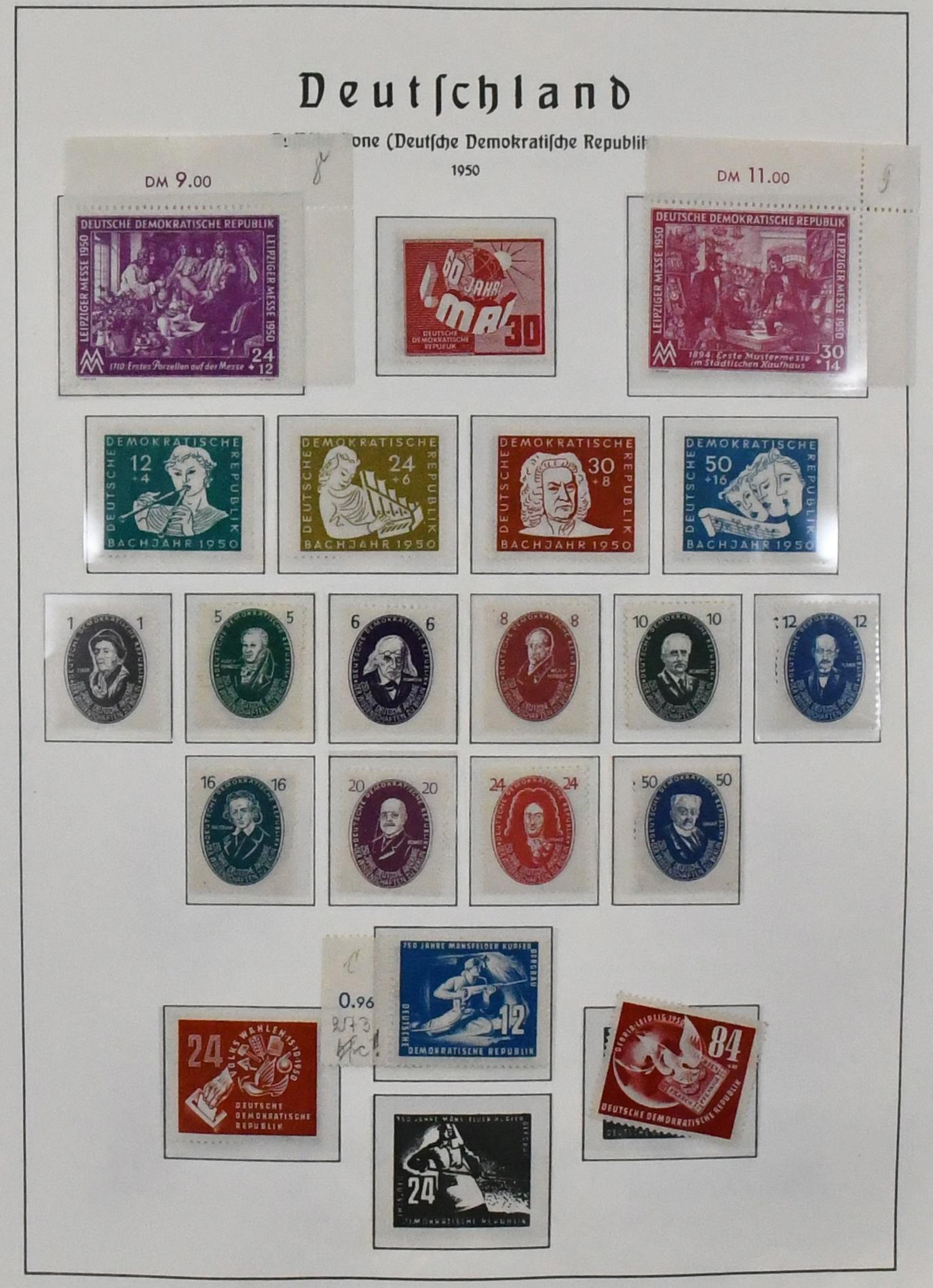 DDR, 1949/1974, postfr. Slg. ab Nr. 242/50, mit u.a. Nr. 256/70, Bl. 7, besseren Werten 5-Jahresplan usw., von 1956-1974 kpl., in zwei Leuchtturm-Vordruckalben. Mi. 2800,- plus Alben und ungebr. Nr. 286/88, Los 7615 der 219. Auktion, alter Ausruf 200,-