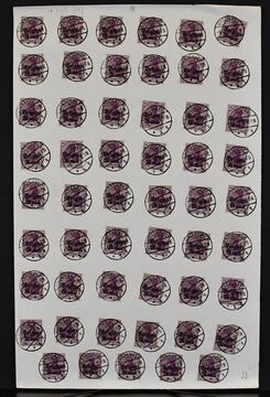 Belgien, gute Nr. 21a 53mal auf Blankoblatt, jeder Wert einzeln gestempelt. Dabei ein Wert exemplarisch geprüft Hey BPP. Mi. 2650,-, Los 5975 der 206. Auktion, alter Ausruf 200,-