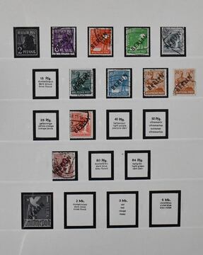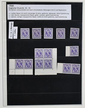 AM-Post, englischer Druck, postfrische Slg. von 280 Werten ex Nr. 10/15, umfangreich nach Zähnungen spezialisiert, im Lindner-Ringbinder. Dabei u.a. Nr. 10B lose und im 12er-Block. Mi. 2200,-, Los 8743 der 217. Auktion, alter Ausruf 200,-