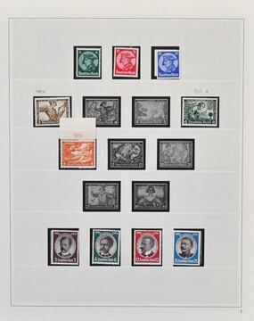 Deutsches Reich ab 1933, postfr./ungebr. Slg. ab Nr. 479/81, mit u.a. Nr. 512/28 postfr., 540/43, oberer Bogenecke Nr. 553POR (Falz im Bogenrand, Marke postfr.), Nothilfe-Satz 1934 usw., auf Vordrucken, Los 6614 der 219. Auktion, alter Ausruf 120,-
