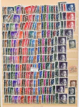 Deutschland, gest. Posten, meist kpl. Sätze, dabei Deutsches Reich Nr. 512/28 per 28 (Mi. 280,-), 781/802A per vier (440,-) und siebenmal Nr. 781/801A (350,-), Gemeinschaftsausgabe Nr. 911/37 per 18 (1440,-), 943/62 per zwei (150,-), 943/61 per zehn (450,-), viel Bund usw. Enormer KW, Los 5755 der 212. Auktion, alter Ausruf 150,-