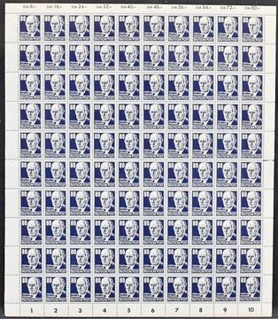 DDR, 1952, 80 Pfg. Köpfe, Nr. 339za, im kpl. postfrischen Bogen mit je zweimal Plattenfehler II und einmal IV. Mi. lose 1792,- + Ränder usw., Los 8606 der 217. Auktion, alter Ausruf 120,-