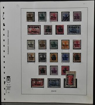 Deutsche Bes. 1. Weltkrieg, Slg. aller Gebiete auf Vordrucken, meist gest., u.a. Belgien Höchstwert 6,25 Fr. in guter Type I, wenig ungebraucht, Los 8260 der 228. Auktion, alter Ausruf 80,-