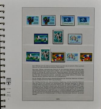 Vereinte Nationen, Wien, postfrische, von 1979-1996 kpl. Slg., zusätzlich mit einigen Kleinbögen, im neuwertigen Lindner-T-Vordruckalbum mit Schuber, Los 9077 der 219. Auktion, alter Ausruf 50,-