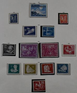 SBZ/DDR, 1945/1989, umfangreiche postfr. Slg. mit u.a. Nr. 182/97, inkl. Nr. 195, mit Nr. 212/27, Bl. 6 (Mi. 220,-), sowie DDR ab Nr. 242, lediglich ohne Bl. 8/9, kpl., mit allen besseren Ausgaben, u.a. allen Pieck-Ausgaben, Bl. 7, Nr. 261/70, 286/88, 327/41, allen Fünfjahresplänen, Bl. 10/15, inkl. Bl. 12X usw., in fünf dicken Alben. Dazu reichhaltig gestempelte Werte inkl. Nr. 286/88 etc., von 1966-1989 offensichtlich kpl. Michel der postfr. Ausgaben alleine 6000,- plus nicht unerheblicher Mi. für die gest. Werte, Los 7404 der 210. Auktion, alter Ausruf 600,-