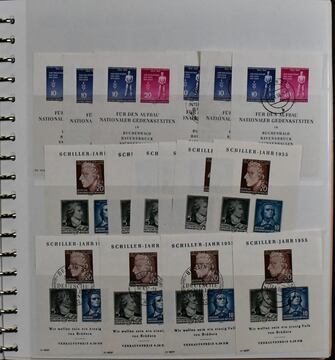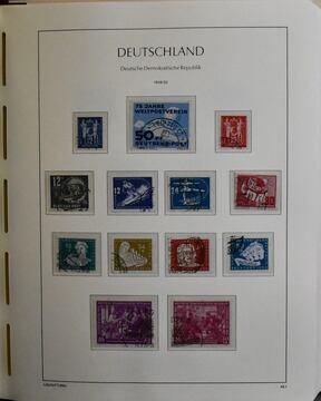 DDR, 1949/1990, gestempelte, bis auf einige Werte ex Nr. 327/41, nahezu komplette Sammlung auf Leuchtturm-Vordrucken in vier Klemmbindern. Dabei alle besseren Werte wie Nr. 261/70, 286/88, Bl. 7, alle vier Marx-Blöcke, Bl. 10/19 usw. Dazu diverse Zusammendrucke, u.a. alle Zus.-Dr. ex Nr. 1074/79 (Mi. billigst 360,-) etc. Mi., alles als Gefälligkeitsentwertung gerechnet, bereits 5300,-, Los 7463 der 210. Auktion, alter Ausruf 500,-