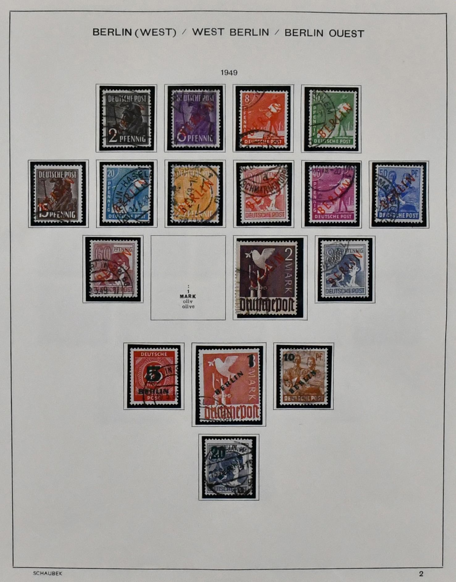 Berlin, 1948/1990, sauber gestempelte Slg. ab den Aufdruckwerten, im Schaubek-Vordruckalbum. Dabei Nr. 1/15, 34, 35/41, 61/63 inkl. Nr. 63I, Nr. 70 etc., von 1950-1990, nur ohne Nr. 86 u. 109, kpl. Mi. 4400,-, Los 7070 der 219. Auktion, alter Ausruf 300,-