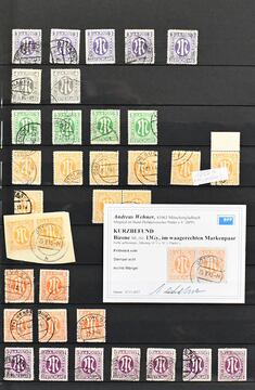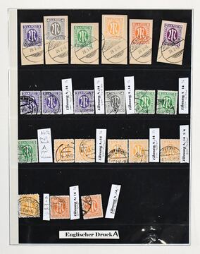 AM-Post, englischer Druck, Nr. 10/15, gestempelte Sammlung mit allen Zähnungen, bis auf Nr. 10B und 13E, teils bereits geprüft. Dabei Nr. 10G gepr., 12A/G, 13C per zwei, beide mit Eckstempel, waager. Paar Nr. 13G, Befund Wehner BPP, 14A/G, 15a/b, A/G. Mi. 2400,-, Los 7843 der 219. Auktion, alter Ausruf 300,-