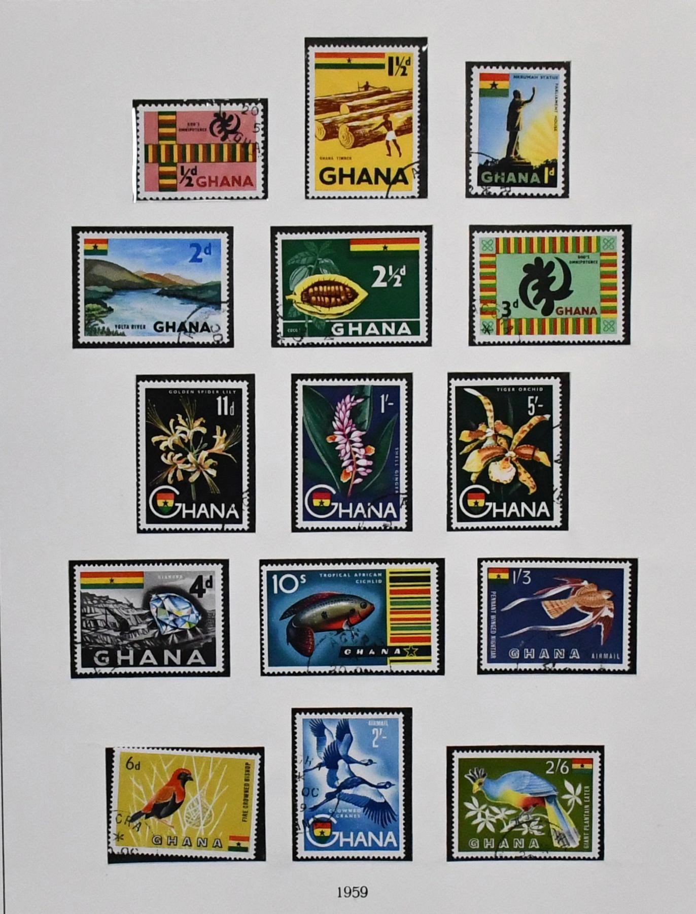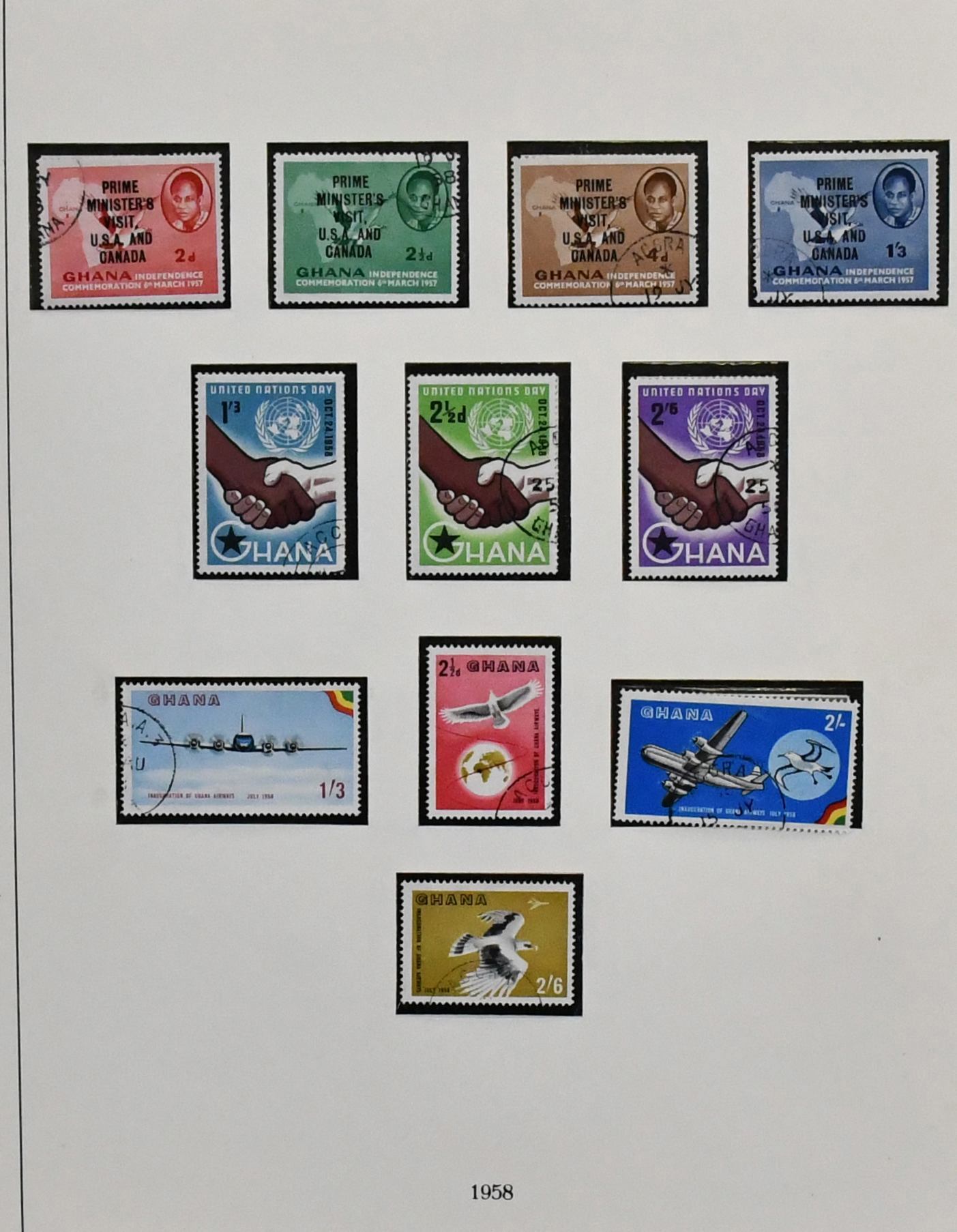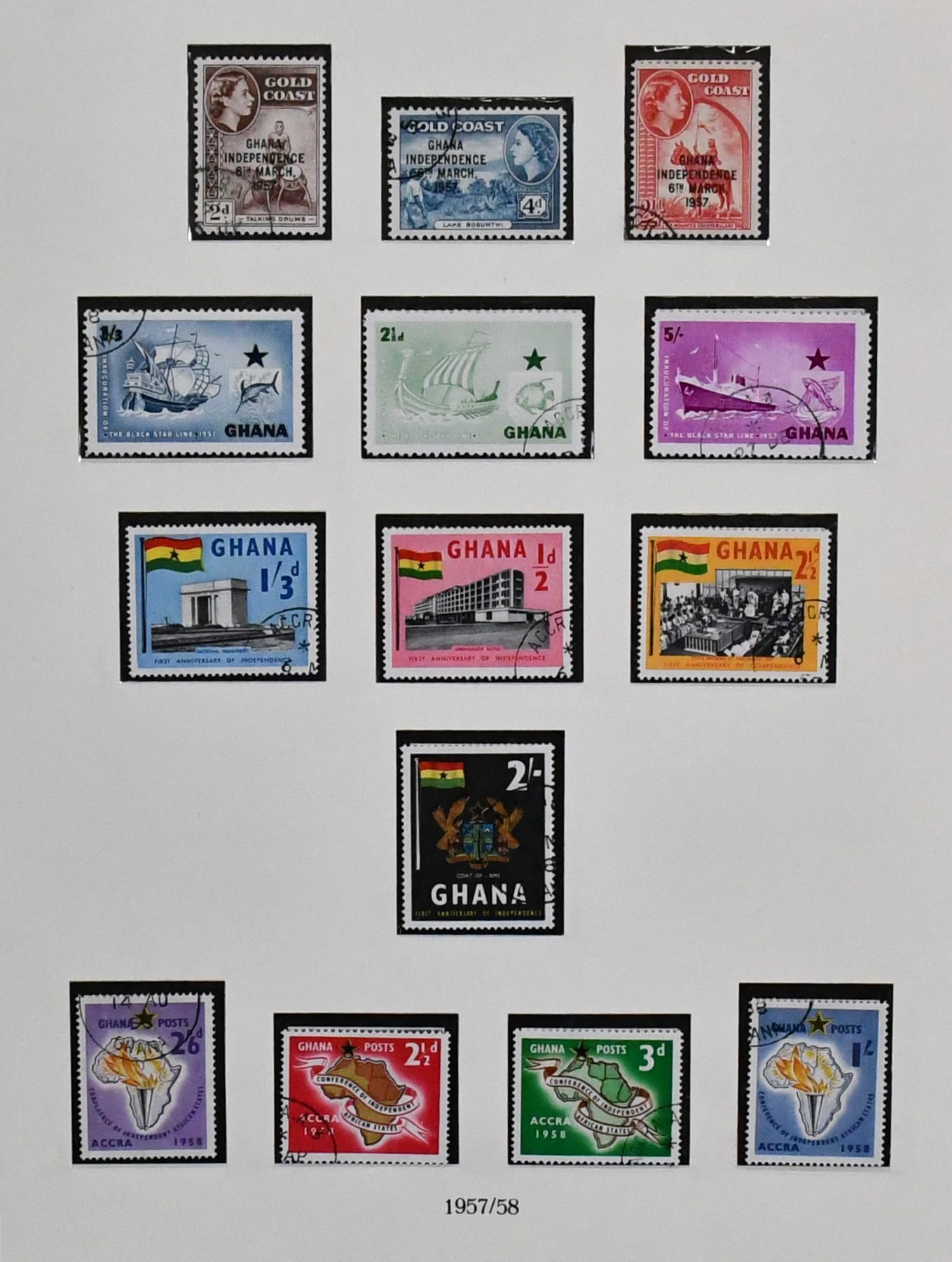 Ghana, von 1957-1967 kpl. Slg., mit den Ausgaben bis Anfang 1961 gest., und später postfrisch, im Lindner-Vordruckalbum