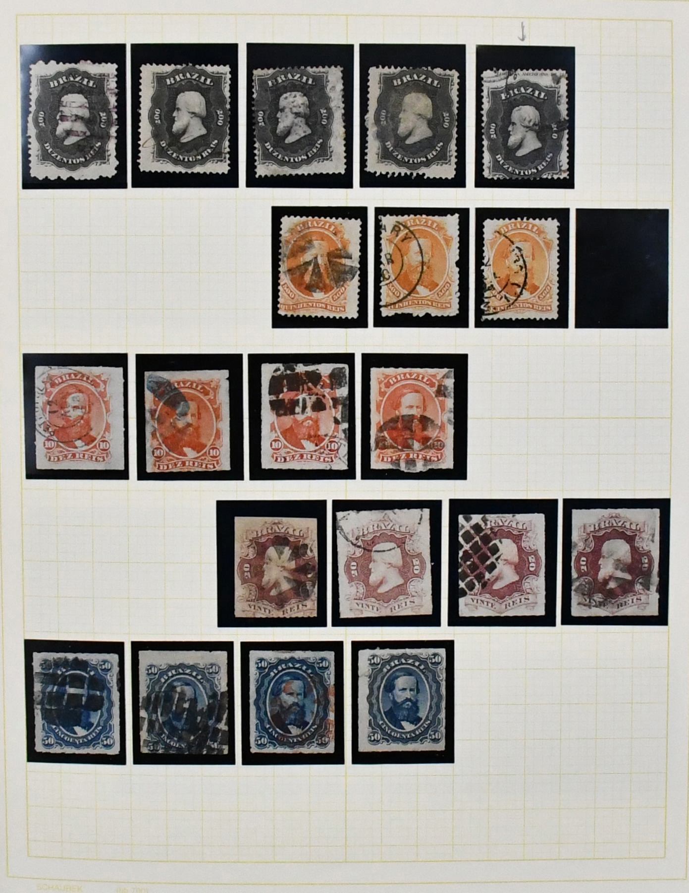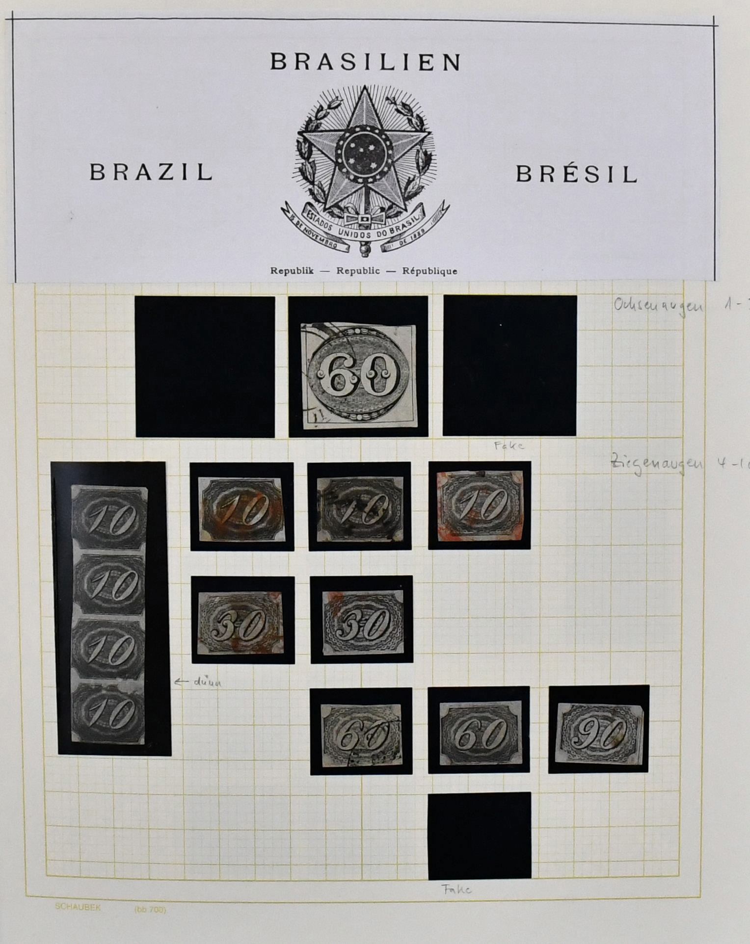 Brasilien, 1843-1950, Slg. im dicken Binder auf selbstgest. Seiten, ab Nr. 2, "Ziegenaugen" mit 12 Werten inkl. Viererstreifen, 38 "Katzenaugen", Nr. 11-22, auch Einheiten, Nr. 12(3), 18(3), 22(3), Dom Pedro sehr spezialisiert, sowie die nachfolgenden Ausgaben reichlich. Ein seltenes Angebot!