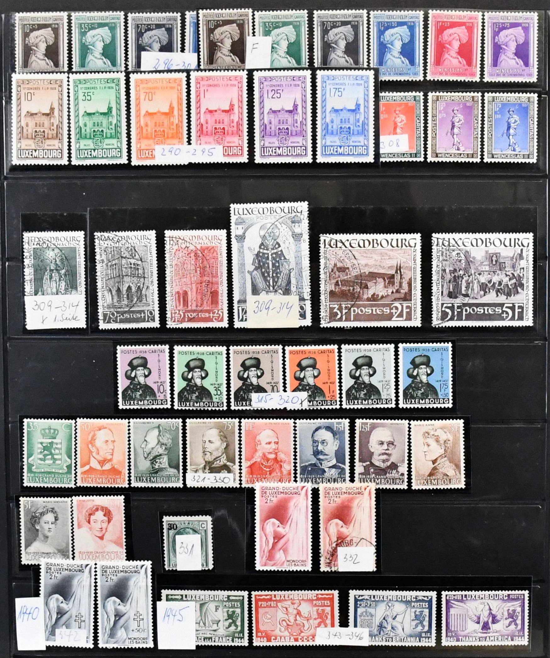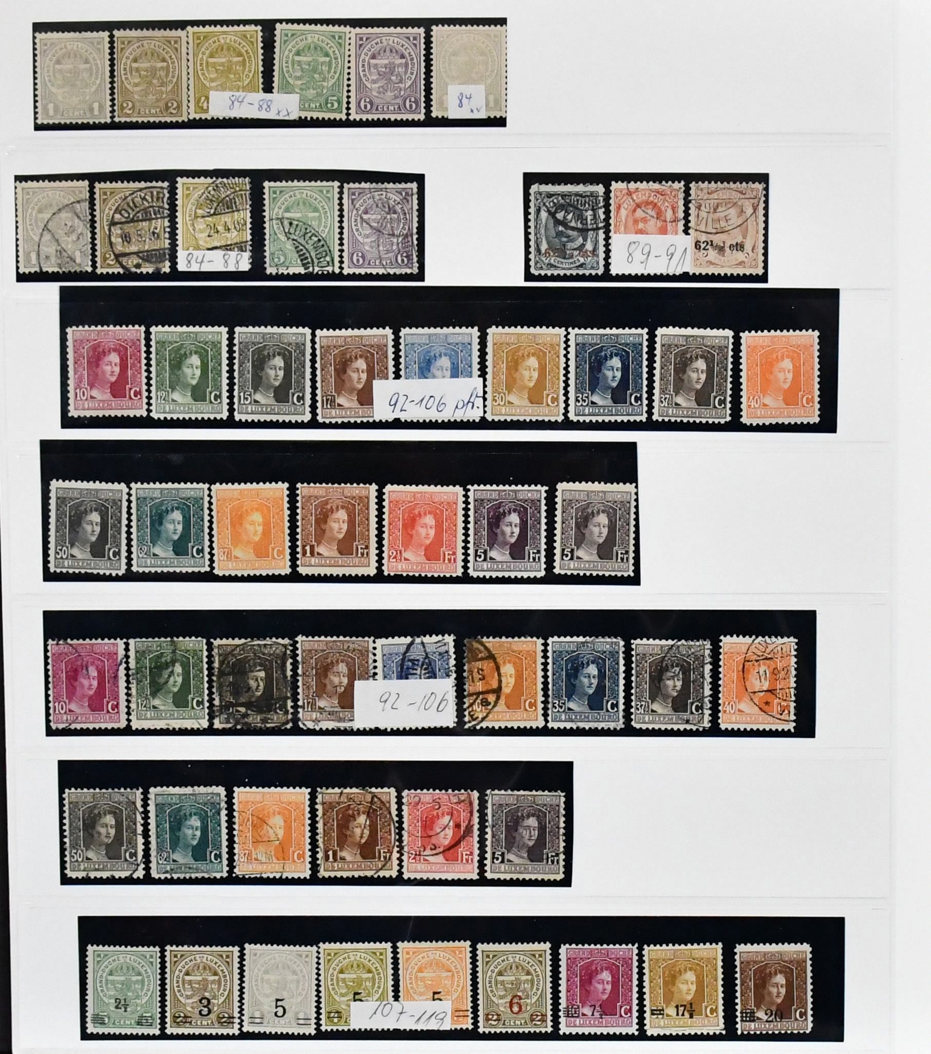 Luxemburg, 1852/1995, Partie von über 7000 Werten ab Klassik, sauber in drei dicken E-Büchern. Dabei Nr. 1/2, 5, 7, 10, Nr. 25 per zwei, 39 gest., 45/56 gest. (Mi. 300,-), meist sogar mehrfach, 83 gest., 148/51 gest., etliche Kinder-Sätze ab 1926, mit 1928 gest., 1930/1938 kpl. postfr. (Mi. 740,-), Nr. 309/14 postfr., CEPT 1956 postfr. usw. Mi., nur der Ausgaben bis 1939, bereits 4000,-, dazu die 5300 Werte ab 1945 unberechnet