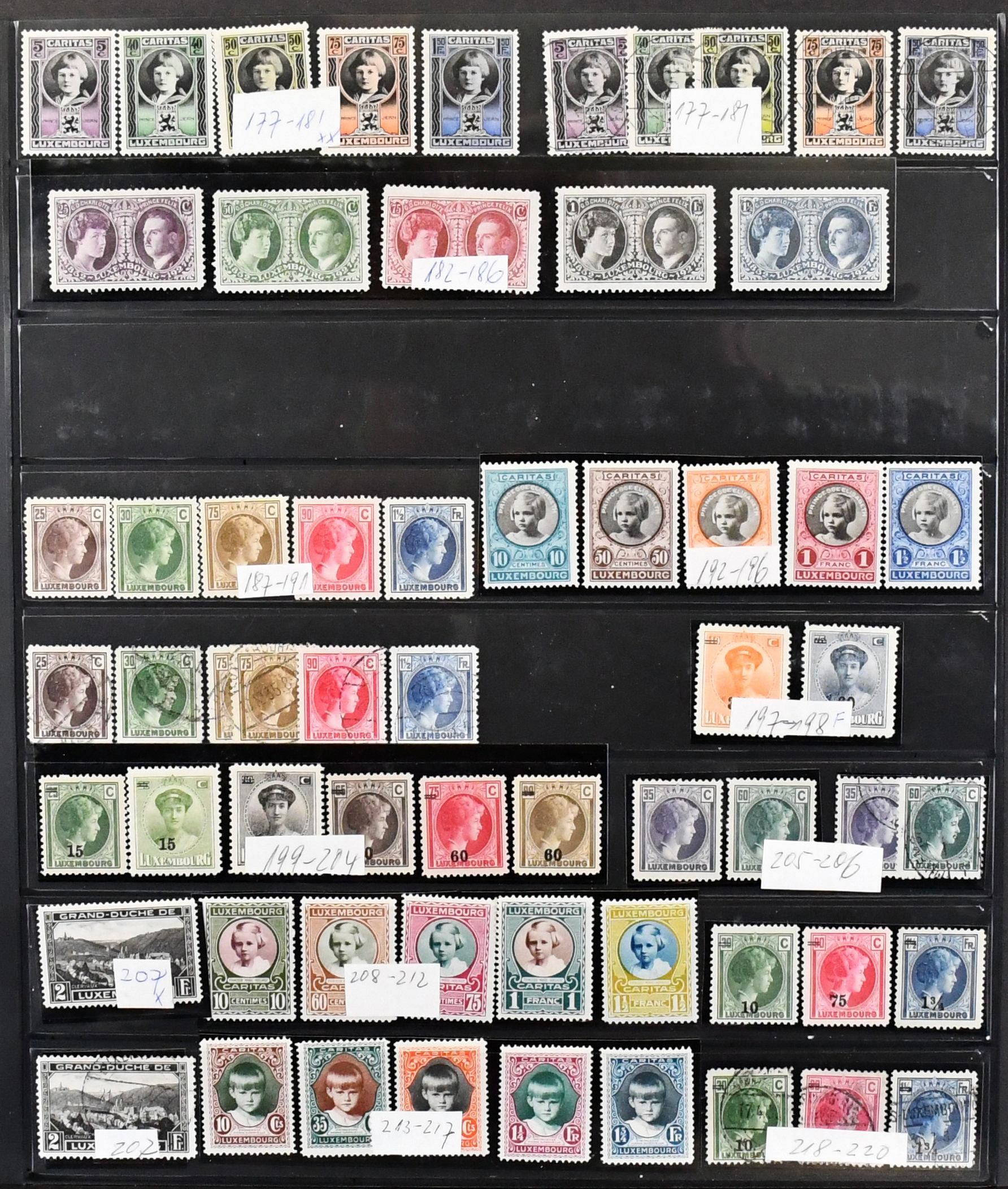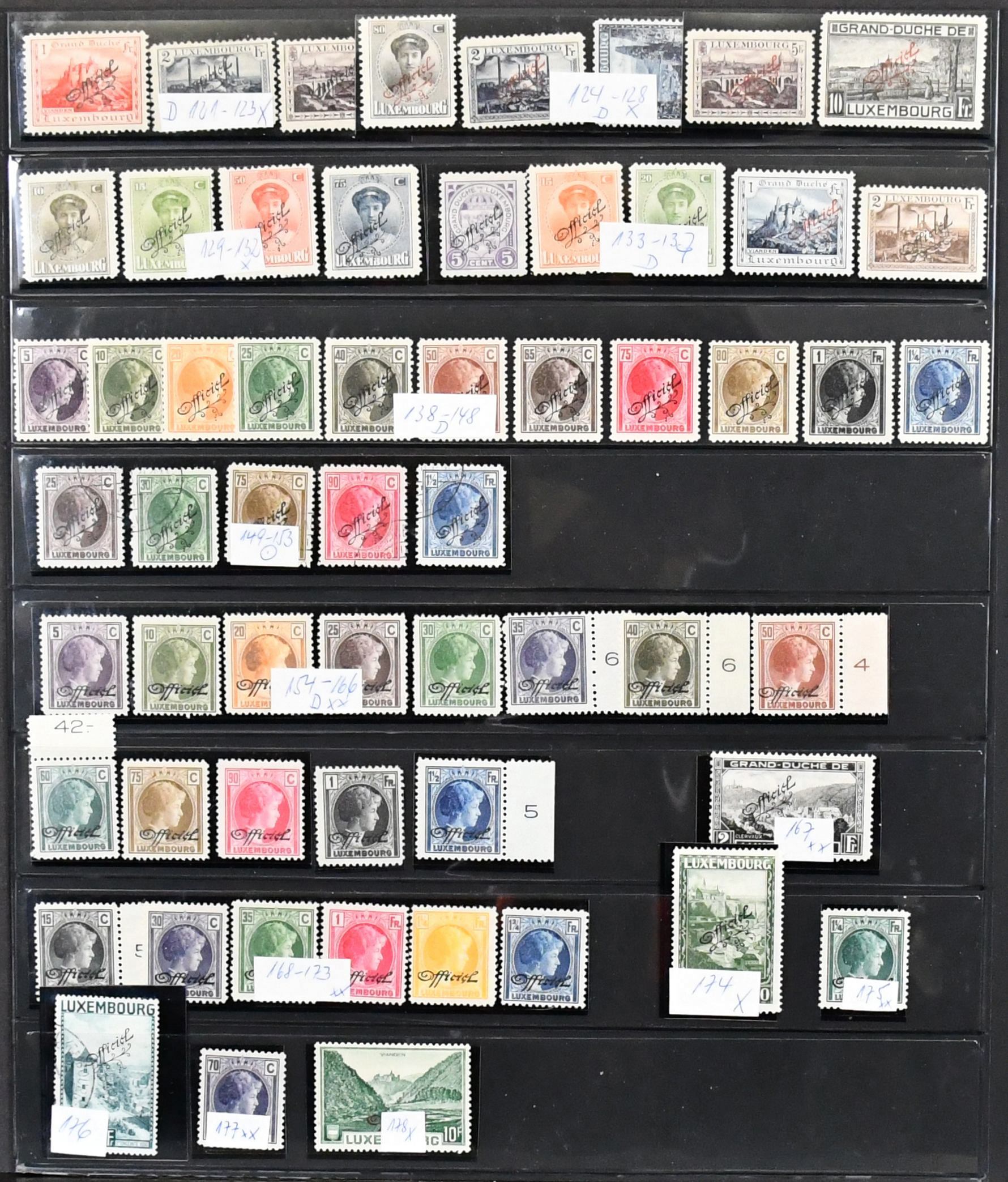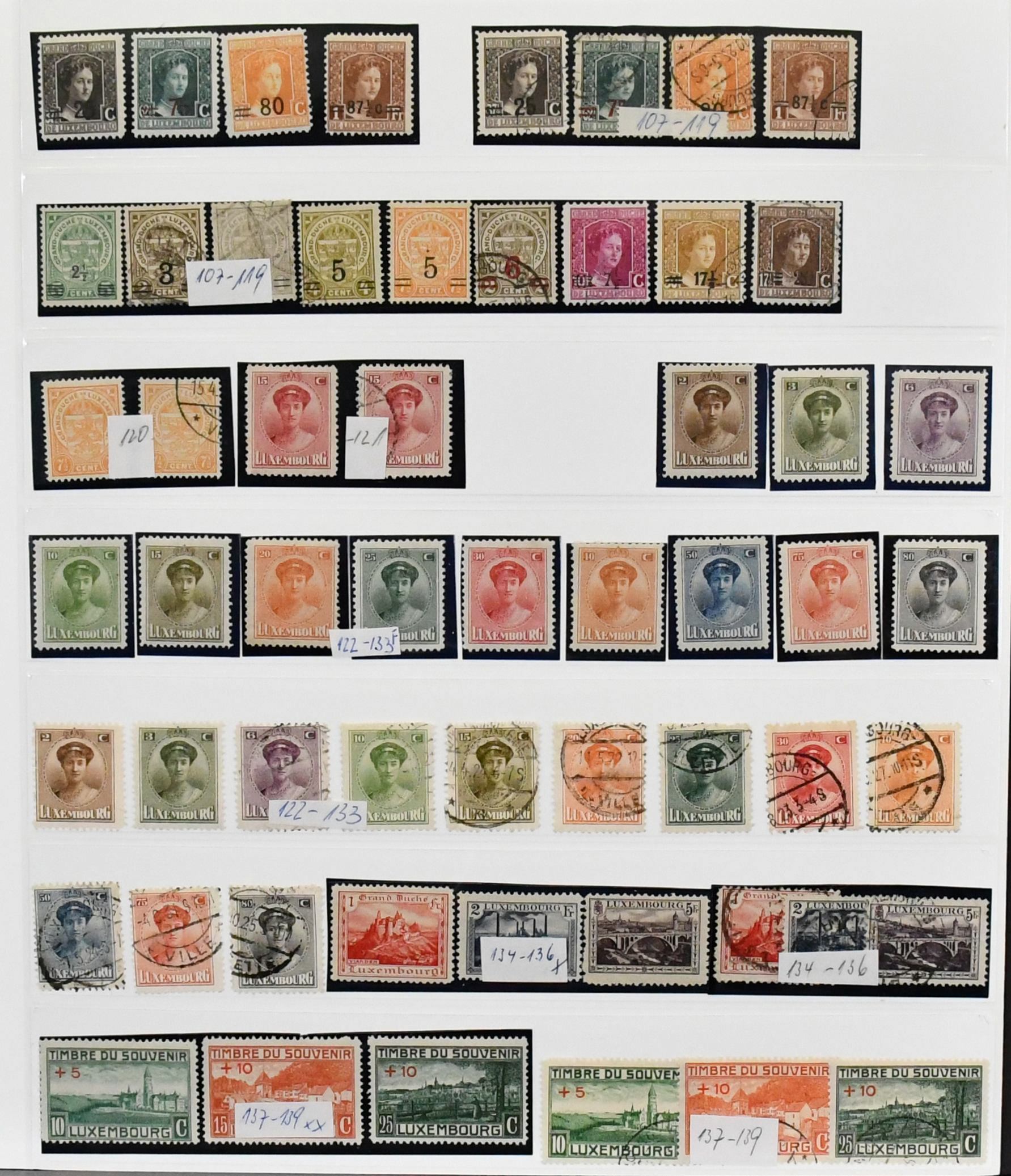 Luxemburg, 1882/1997, umfangreiche Slg. mit vielen kpl. Sätzen, u.a. Nr. 45/56 gest. (Mi. 300,-), 57/66 gest. (140,-), 92/106 gest., vielen Caritas-Sätzen ab 1924 usw., von 1960-1997 postfrisch kpl. Dazu Dienst Nr. 62/178 kpl., alles im SAFE-Ringbinder. Mi. 3300,-