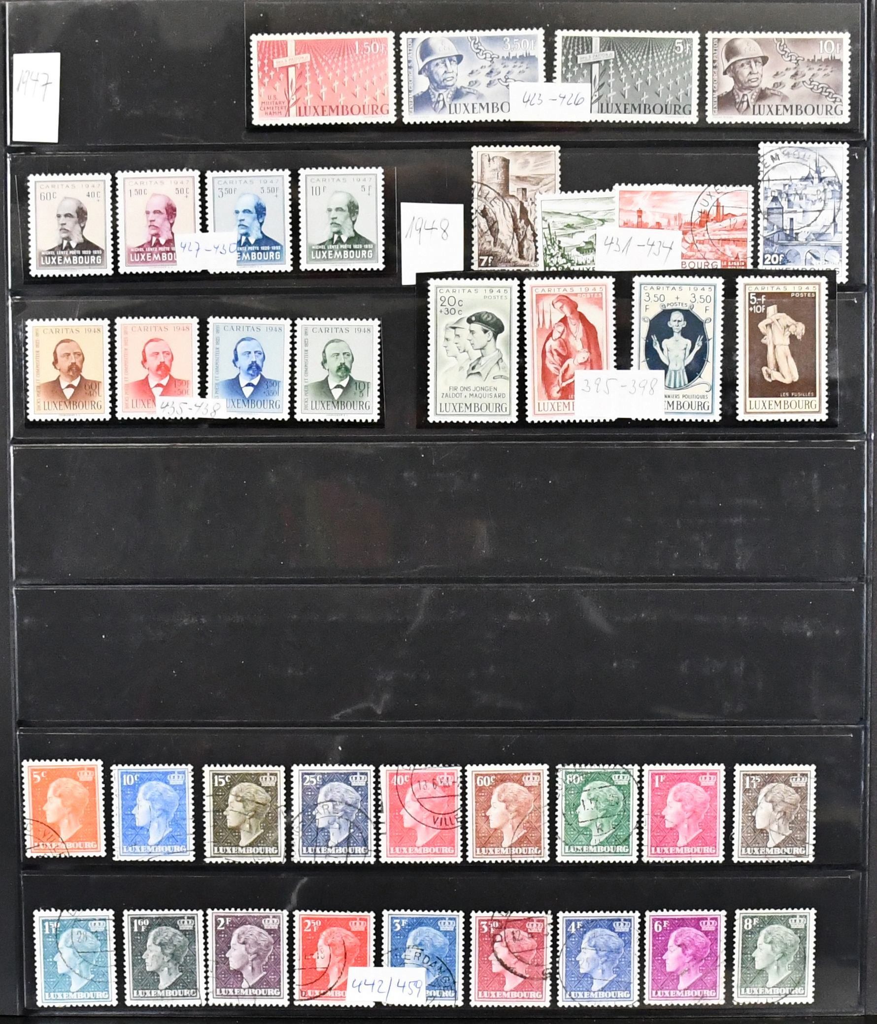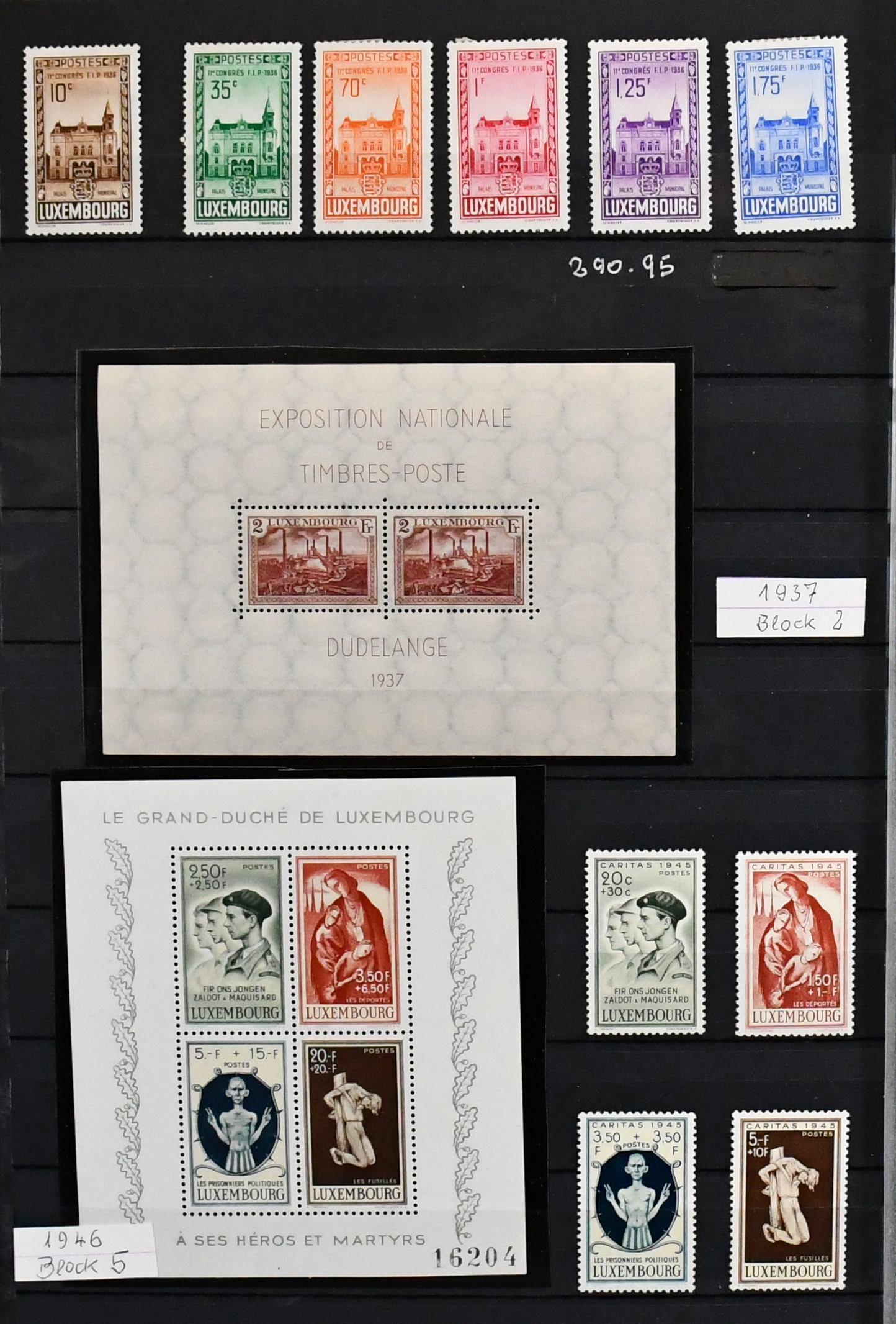 Luxemburg, 1945/74, postfr. Slg. mit u.a. Bl. 4/6, Nr. 417/22, etlichen Caritas-Sätzen ab 1946, Nr. 488/89, CEPT 1956/57 usw. Mi. 1700,-