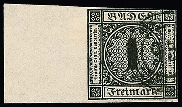 1 Kr. schwarz (oben rechts angeschnitten) mit ungewöhnlich 21mm breitem (!) Bogenrand links, NS "95"