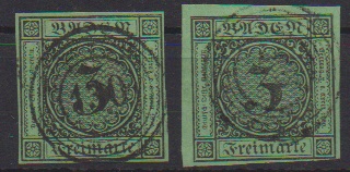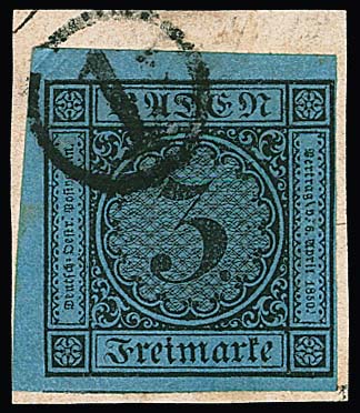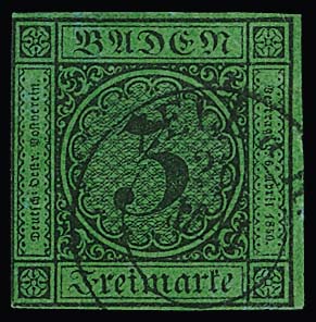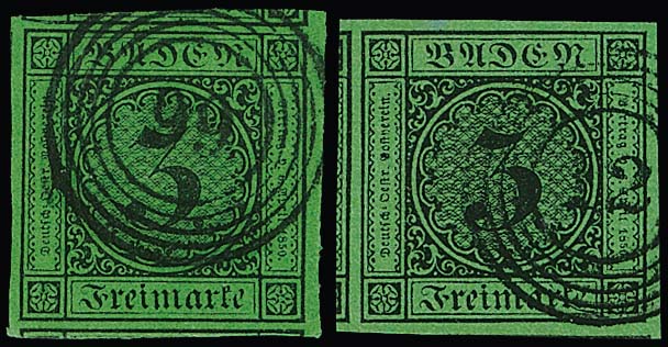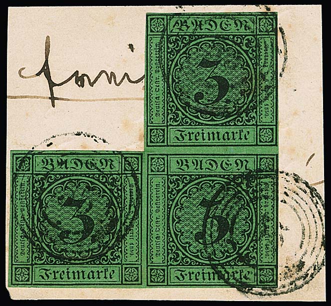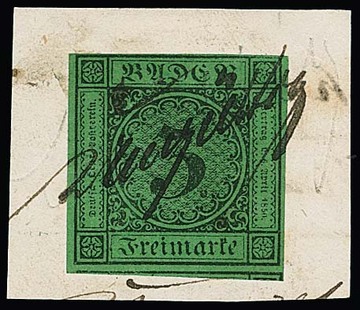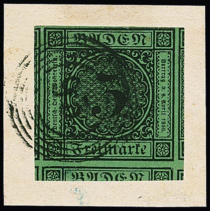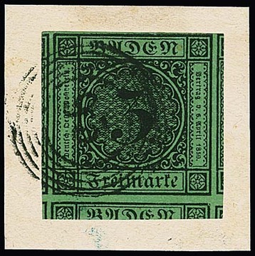 3 Kr. schw./grün (etwas berührt) mit seltener Entwertung durch Orts-K2 "Zell a.H.", sign. Unverferth