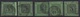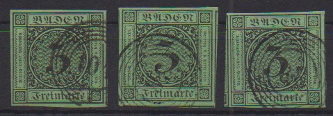 3 Kr. schw./grün, sechs ausgesucht breit- bis überrandige, meist Luxusstücke
