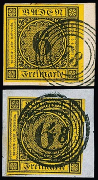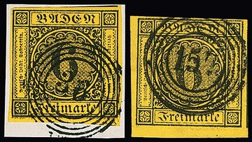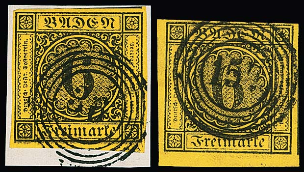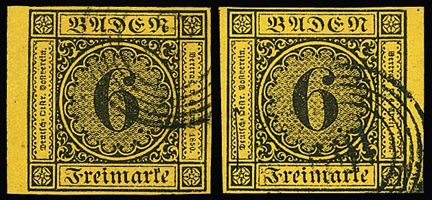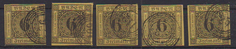 6 Kr. schw./gelborange, sieben ausgesucht breitrandige Kabinett-/Luxusstücke