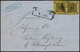 6 Kr. schw./gelborange, Luxus-Schnittriese, dreiseitig Nebenmarken, auf kleinem Briefchen von Lahr nach Straßburg