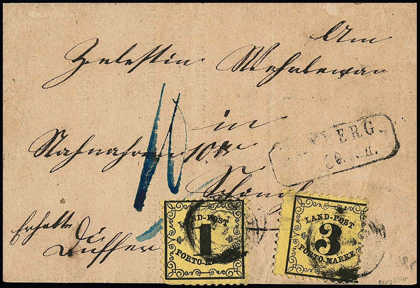 Landpost 1 Kr. schw./gelb und 3 Kr. schw./gelb auf Nahbereichs-Nachnahmebriefchen mit NS "145" und Ra2 "Tryberg" nach Schönach, kleine Randmgl., Attest Brettl