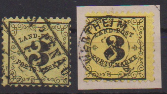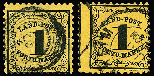 Landpost 1 Kr. und 3 Kr., je beide Papiere gestempelt, Nr. Lp.1y leicht eckhell, die anderen drei gut, Fotoexp. Stegmüller bzw. sign. Brettl, Englert. Mi. 1800,-
