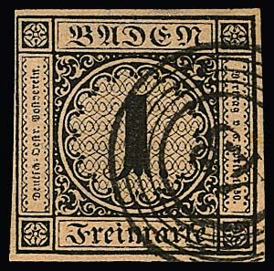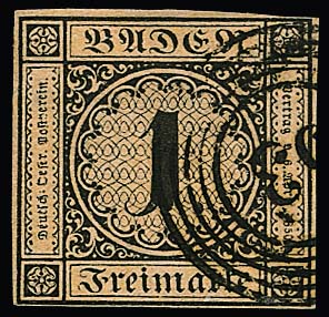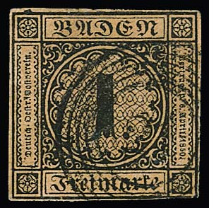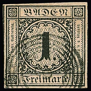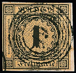 1 Kr. schw./sämisch, allseits voll- bis breitrandiges gest. Kabinettstück, Attest Stegmüller. Mi. 1000,-