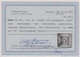 3 Kr. schw./dunkelgelb, breit- bis überrandig, mit Falz auf zugehörigem Kabinettbriefstück mit hierauf nicht häufigem blauem NS "113" (Randegg), sign. Kruschel, Grobe, Bühler