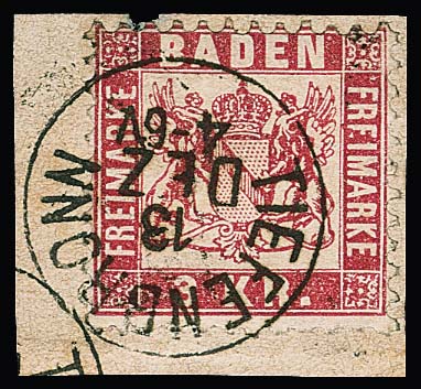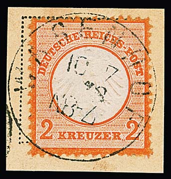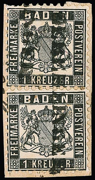 1 Kr. schw./sämisch, voll- bis meist breitrandiges Kabinettbriefstück mit NS "19"(Bruchsal), Mi. 1000,-, sign. Ressel und Attest Stegmüller "farbfrische und feine, tadellose Erhaltung"