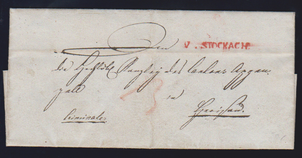 "Stockach", 1818, roter L1 "V. STOCKACH" auf gef. Brief "Criminale" mit Inhalt nach Griessen