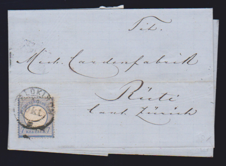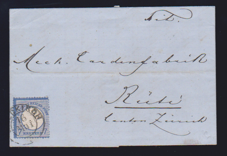 "Tiefenbronn", seltener K1 (später Postort, eröffnet 8/71) auf Kabinettbriefstück 3 Kr.