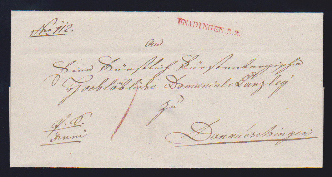 "Unadingen R.2", 1823, roter Rayon-L1 auf datierbarem Brief, Feuser 300,-