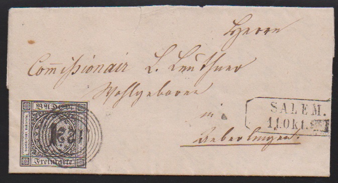 "122" nebst Ra2 "Salem" auf kleinem Briefchen 1 Kr. schwarz