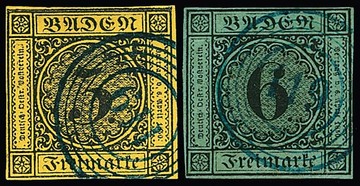 "119" (Rippoldsau) in blau je klar auf 6 Kr. schw./blaugrün und 3 Kr. schw./gelb