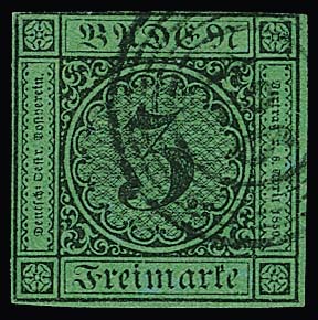 "126" (Schappach) in seltener schwarzer Farbe klar auf 3 Kr. (Papierverletzung). Feuser + 1000,-