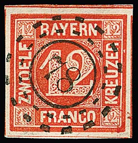 12 Kr. rot, breitrandiges Luxusstück mit sehr schönem oMR "78" (Deidesheim), sign. Schmitt mit Fotoexp.