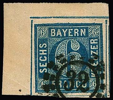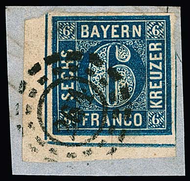 6 Kr. blau, linke untere Bogenecke auf Luxusbriefstück mit oMR "264" (Kulmbach), Fotoexp. Sem