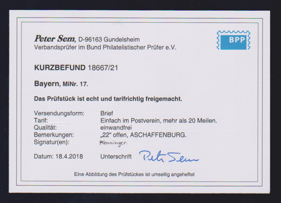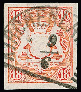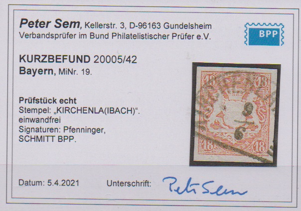 18 Kr. ziegelrot, breitrandiges Luxusstück mit HK von Kirchenlaibach, sign. Schmitt, Pfenninger und Fotoexp. Sem. Mi. 220,-